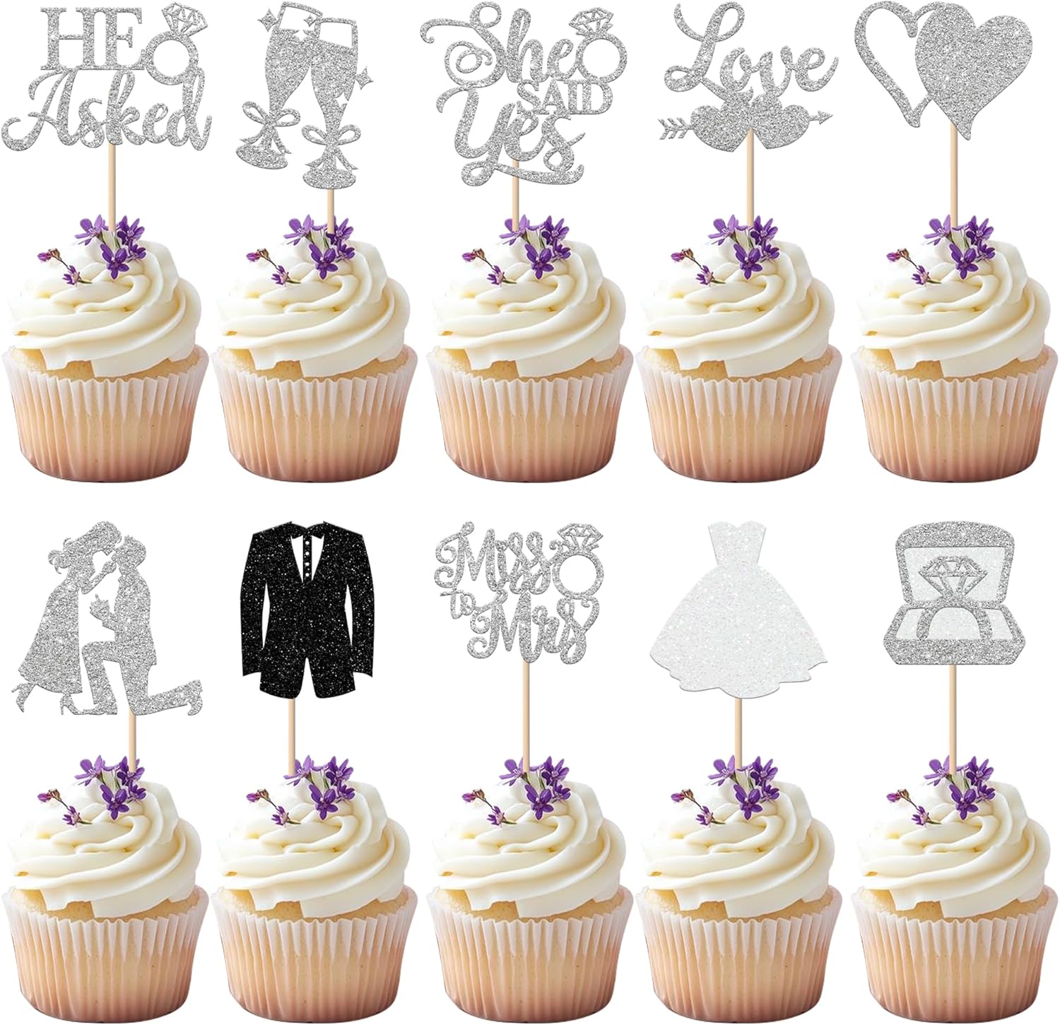 - APPLICATION:Perfect decoration for cupcakes,cookies, cakes, fruits, brownies, ice cream and more,particularly suit to use on bride to be theme party, bridal shower party, groom & bride theme party,wedding engagement party cupcake decorations supplies