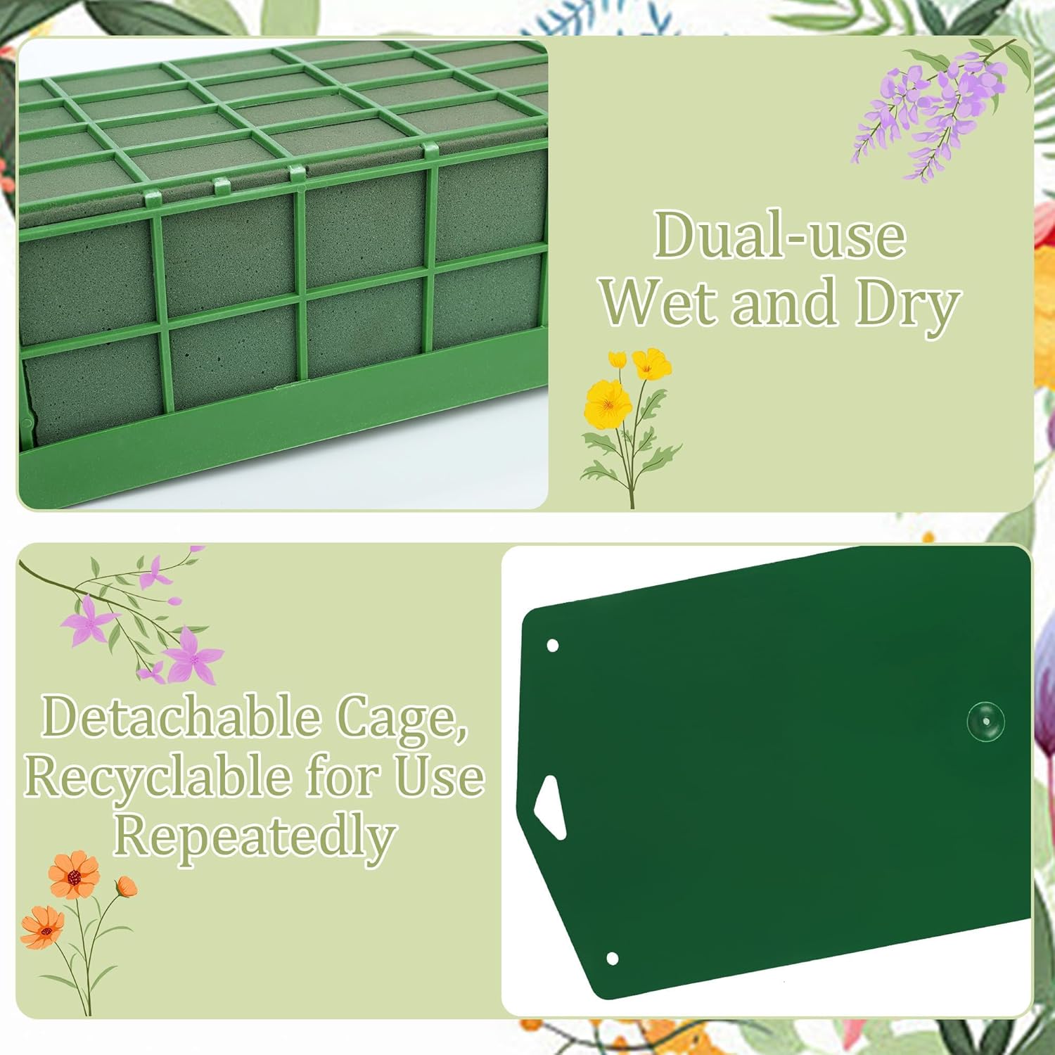 - Practical Design: this floral foam product features a lightweight green cage that offers excellent support to help secure your flower arrangements more effectively; the uniquely designed rectangular wet floral foam absorbs water quickly and has low drainage, enabling it to firmly hold stems in place while keeping your flowers and plants fresh for longer