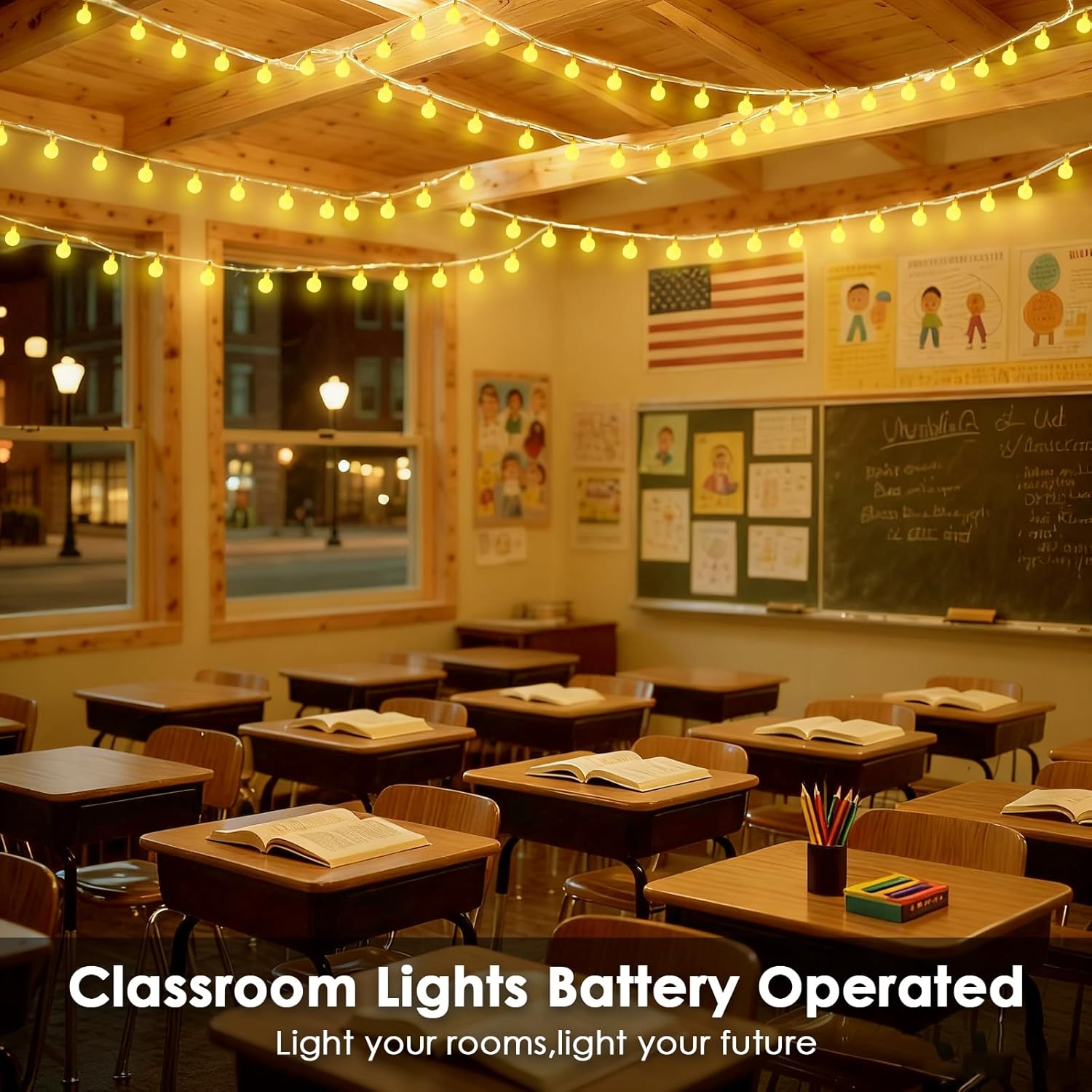 - 8 Lighting Modes: With 8 versatile lighting modes—Combination, In Wave, Sequential, Slo-Glo, Flash, Slow Fade, Twinkle, and Steady On—these battery powered lights help craft a warm or romantic moods. Each mode suits different settings: classrooms, dorms, girls' bedrooms, homes, kids' rooms, balconies, windows, living rooms, tents, and gardens