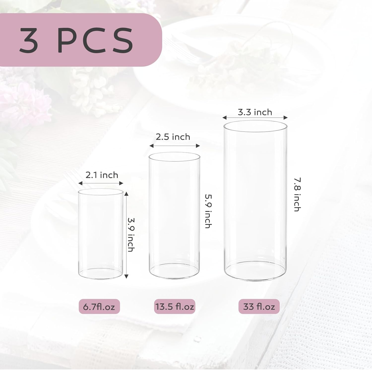 3pcs Glass Vases for Flowers, 4,6,8 Inch Tall Cylinder Vases, Bud Vase and Floating Candle Holder Vase for Wedding & Holiday Centerpieces for Tables, Home Decor, Housewarming Gift
