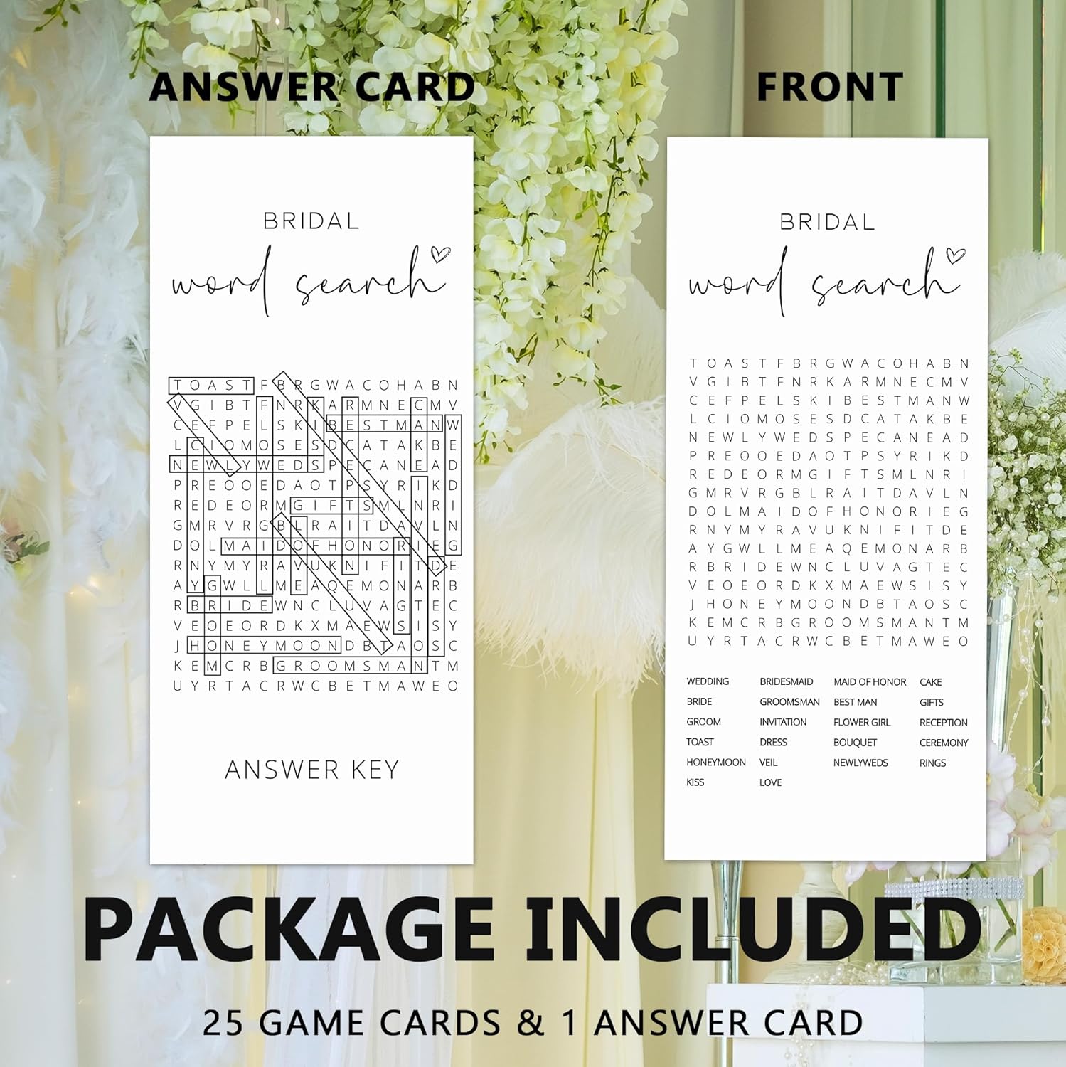 - Perfect for Wedding Events: Ideal for bridal showers, engagement parties, wedding showers, and bachelorette events. Easily pairs with bridal shower decorations, bridal party gifts, and other wedding games.