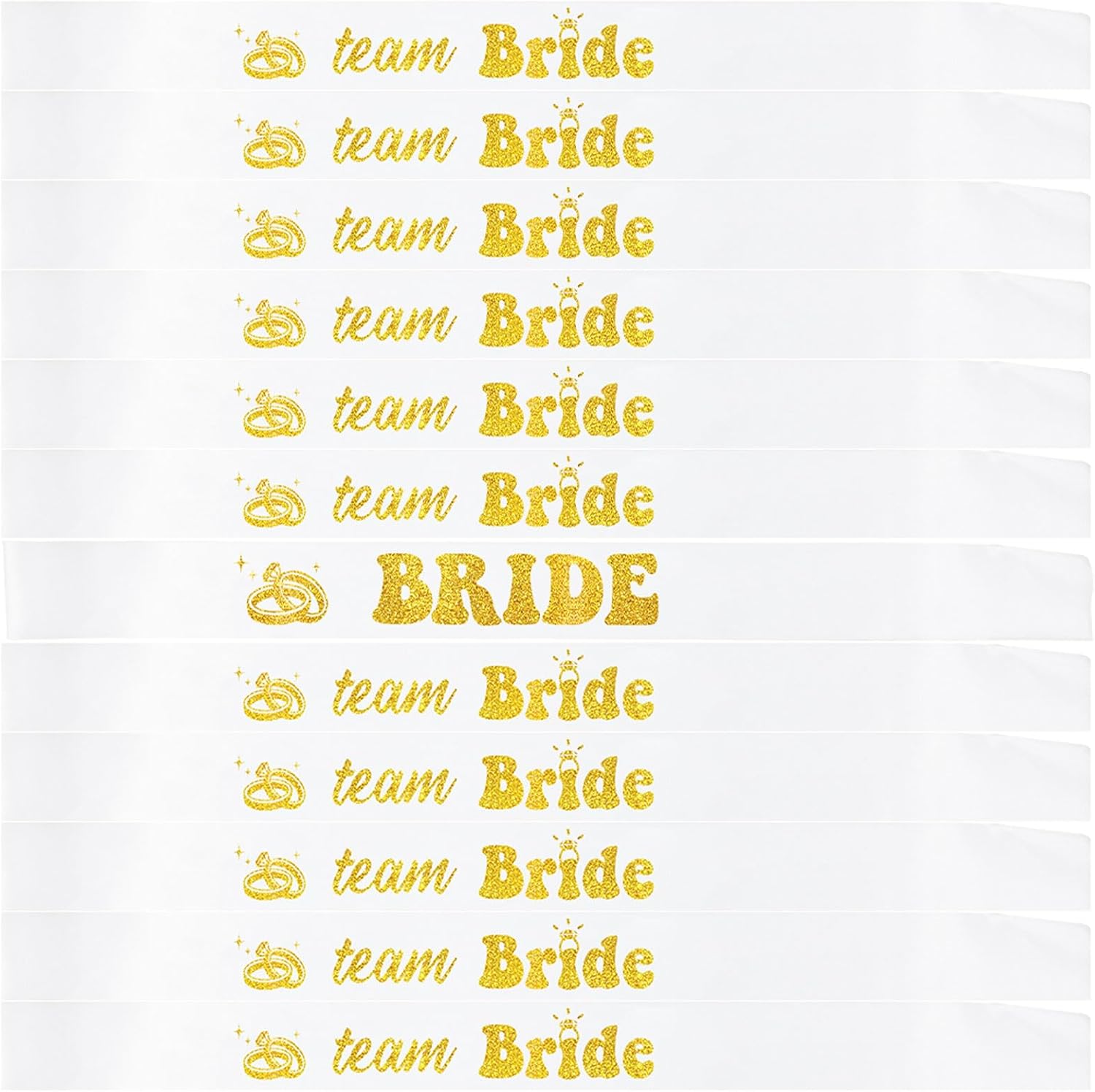 12 PCS Bride Sash Bachelorette Party Bride to Be Team Bride Sashes Maid of Honor Bridesmaid Sash for Bridal Shower and Hen Party Decorations Favors,White Gold