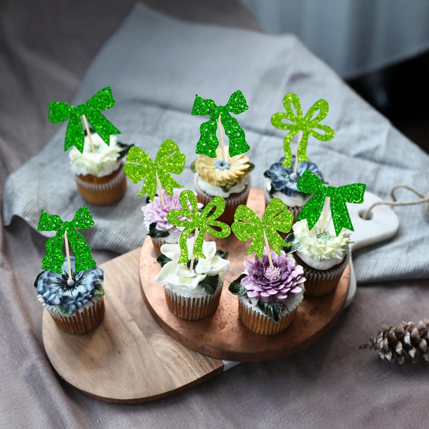 Ephlyn 24Pcs Bow Cupcake Toppers Bow Birthday Cake Topper Girls Birthday Party Decorations Bowknot Cupcake Decorations for Bridal Baby Shower Birthday Wedding Themed Party Green