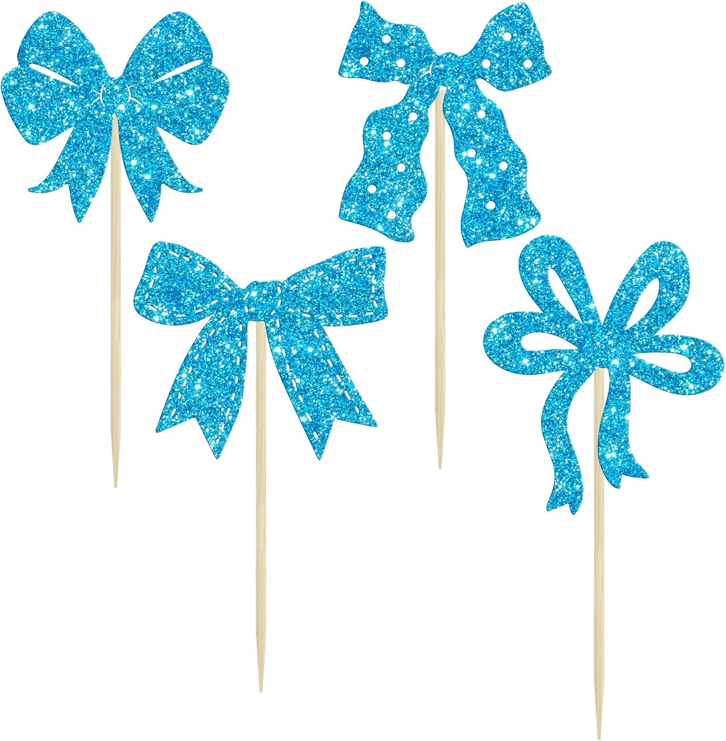 Ephlyn 24Pcs Bow Cupcake Toppers Bow Birthday Cake Topper Girls Birthday Party Decorations Bowknot Cupcake Decorations for Bridal Baby Shower Birthday Wedding Themed Party Blue