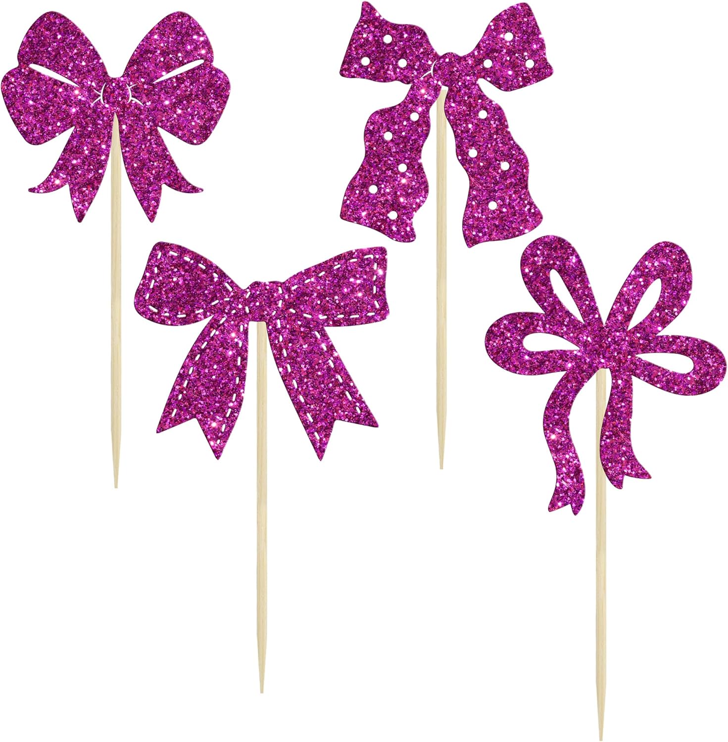 - 【Birthday Party Supplies】: 24Pcs Bow Cupcake Toppers are perfect for pink bow party, pink bow birthday party, coquette birthday party, baby shower, bridal shower, wedding, pink bachelorette party, family gathering party cupcake decorations, they will make your cupcake more attractive and bring the fun to your party, make your guests fall in love with them!