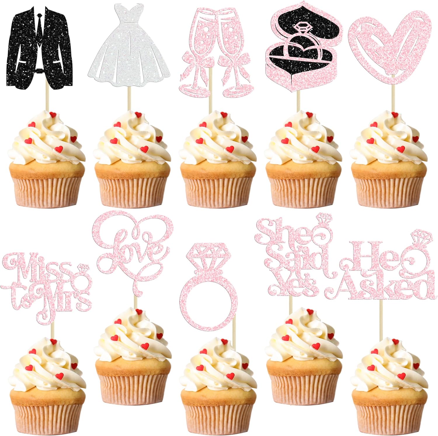 - --She Said Yes Cupcake Toppers are so cute and good for wedding engagement theme party, he asked she said yes theme party, bridal shower theme party, miss to mrs love theme party, bachelorette theme party cupcake decorations. They can make your cupcake more attractive and bring the fun to your party. You can also apply them for ice cream, fruits, cookies and other desserts.