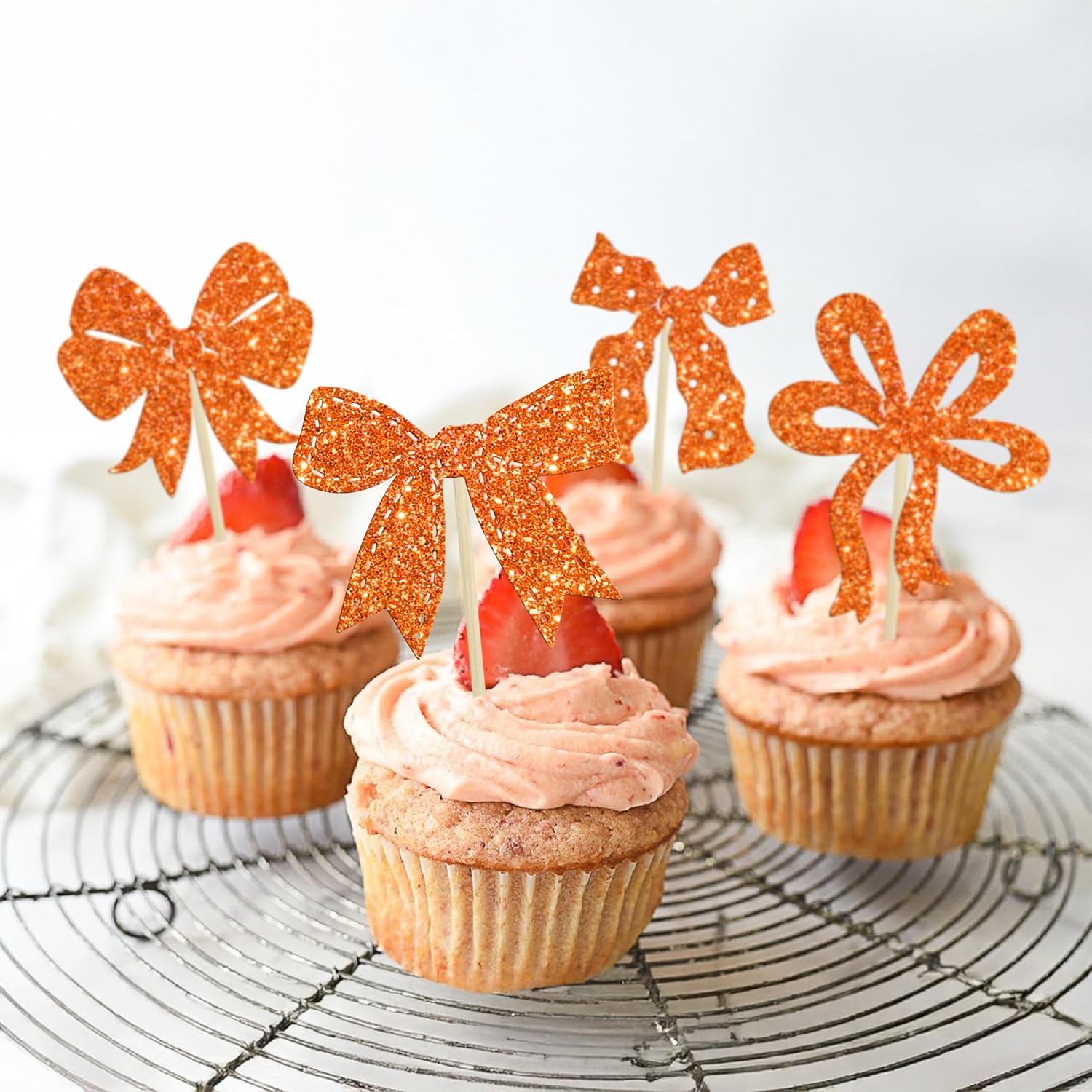 - 【NO Required】: Bow Cupcake Toppers can put in the cake directly! These Bow Cupcake Toppers saves your time and super easy to use. You can easily dress up your cakes, yes! but don't stop there, put them into desserts, cookies, fruit pieces, appetizers, muffins and so much more!