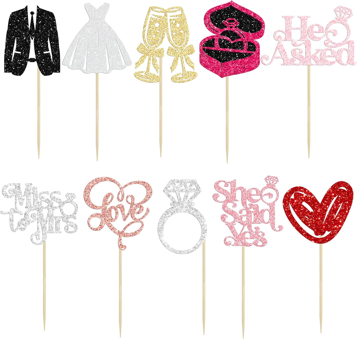 - --She Said Yes Cupcake Toppers are so cute and good for wedding engagement theme party, he asked she said yes theme party, bridal shower theme party, miss to mrs love theme party, bachelorette theme party cupcake decorations. They can make your cupcake more attractive and bring the fun to your party. You can also apply them for ice cream, fruits, cookies and other desserts.