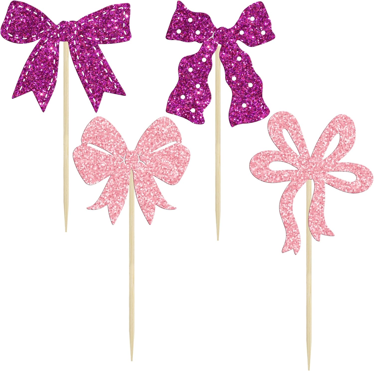 - 【Birthday Party Supplies】: 24Pcs Bow Cupcake Toppers are perfect for pink bow party, pink bow birthday party, coquette birthday party, baby shower, bridal shower, wedding, pink bachelorette party, family gathering party cupcake decorations, they will make your cupcake more attractive and bring the fun to your party, make your guests fall in love with them!