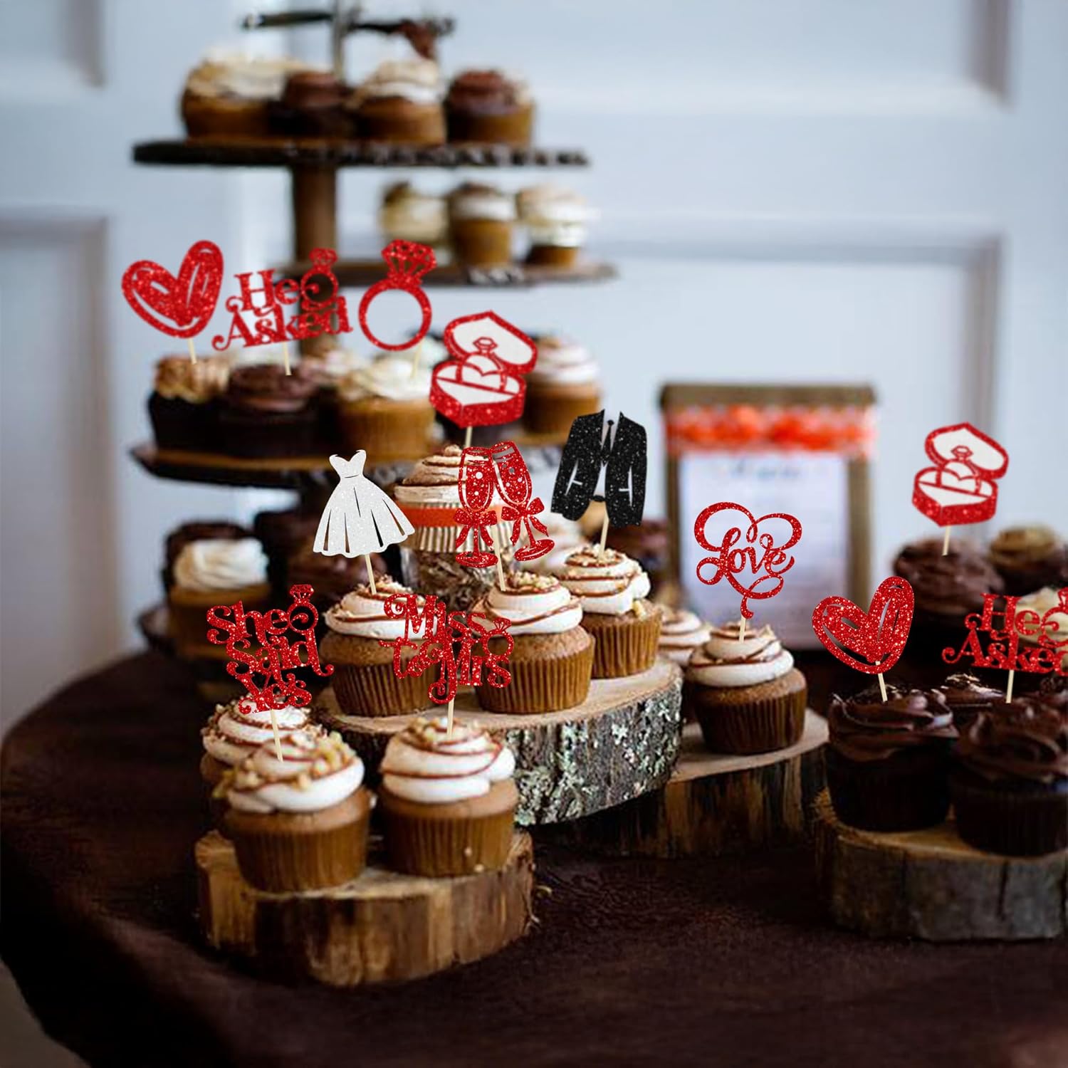 - --Package included: 30Pc She Said Yes Cupcake Toppers Cupcake Toppers. Comes with assembled, so you can insert into your cake directly, which make your cake more interesting.