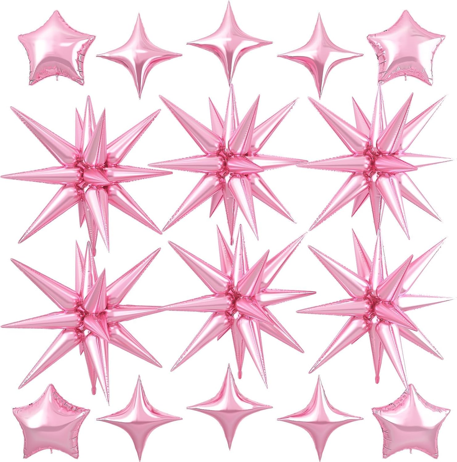 - Package: This set includes 6pcs 22inch pink explosion star foil balloons, 4pcs 10inch pink star foil balloons, 6pcs 10inch pink four angle star balloons, and a ribbon. Perfect for creating a dazzling party atmosphere.