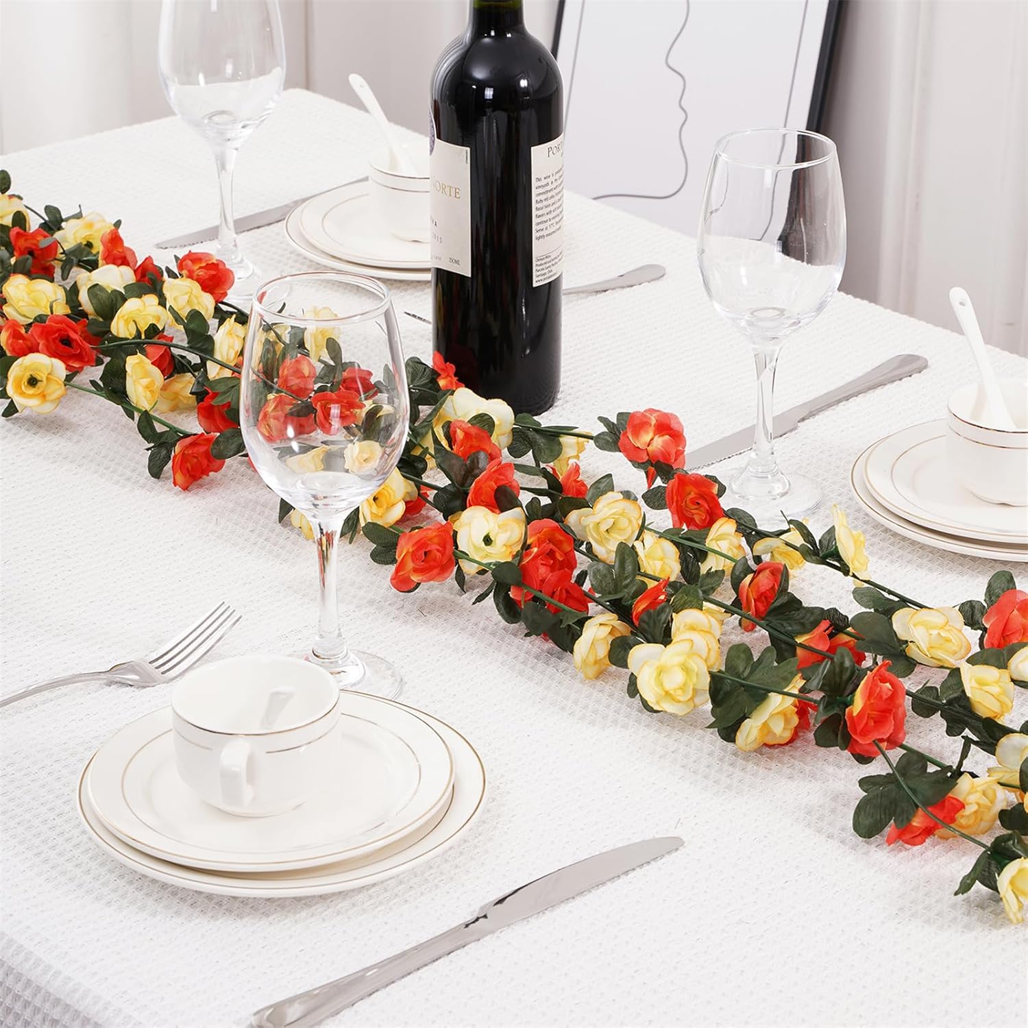 5 Pcs 41FT Flower Garland, Artificial Rose Garland Flowers Plants Fake Flower Hanging Rose Ivy, Birthday Party Valentine's Day Wedding Wall Arch Decor(Orange)