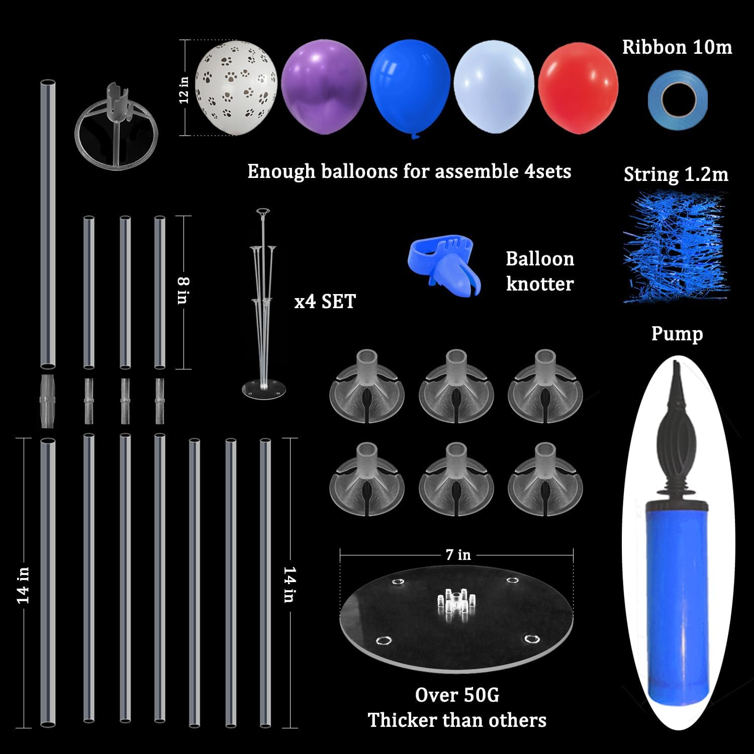 - WHAT INLCUDE: This balloon stand kit include 4 set balloon holders, 35 pcs balloons - blue red purple puppy paw balloons, balloon pump, ribbons, glue dots and tie tool