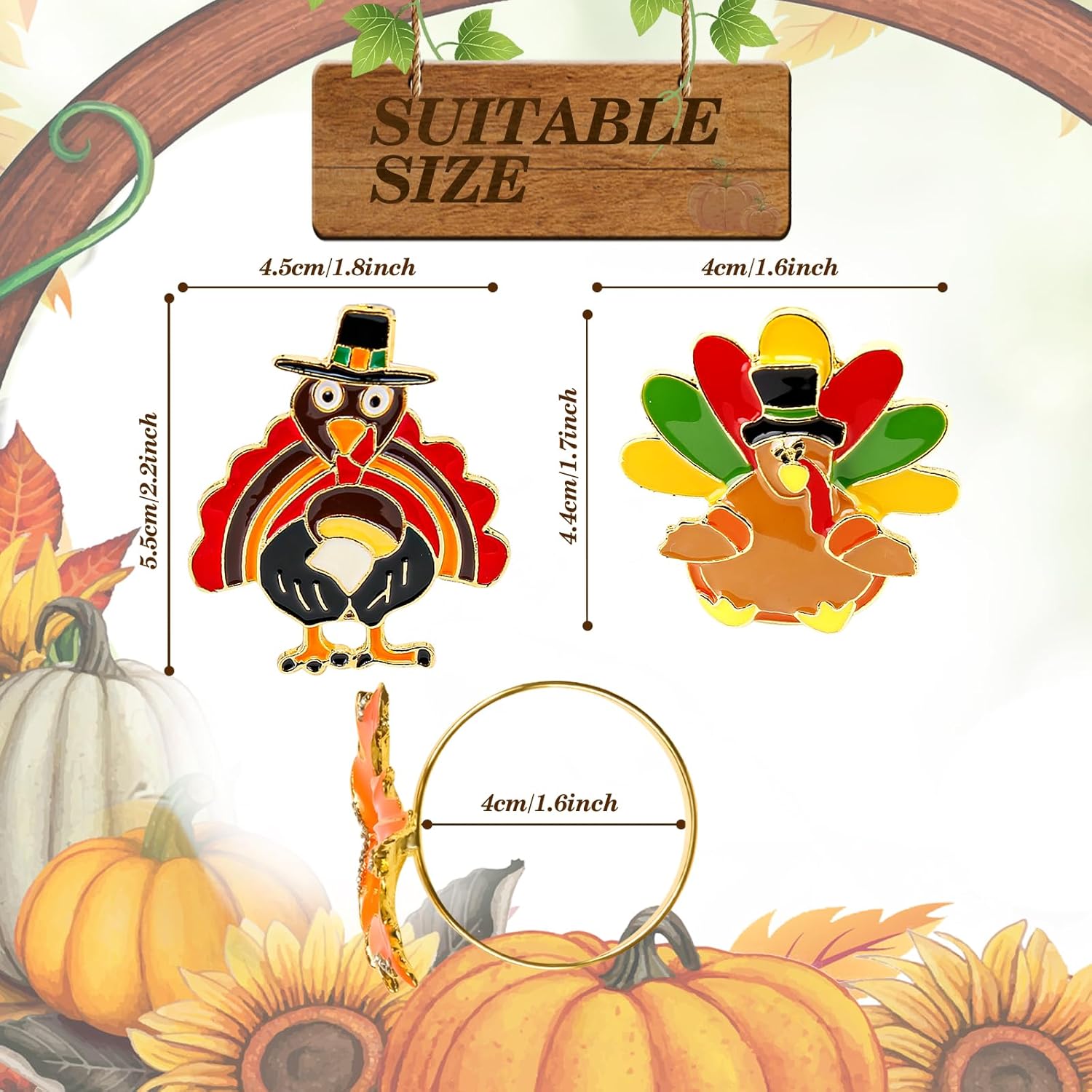 - Package Contains:You will receive includes 6 pieces of thanksgiving napkin rings in 3 styles in total,Three different shapes of turkeys napkin rings, 2 of each type,this will be enough for your fall table Decoration