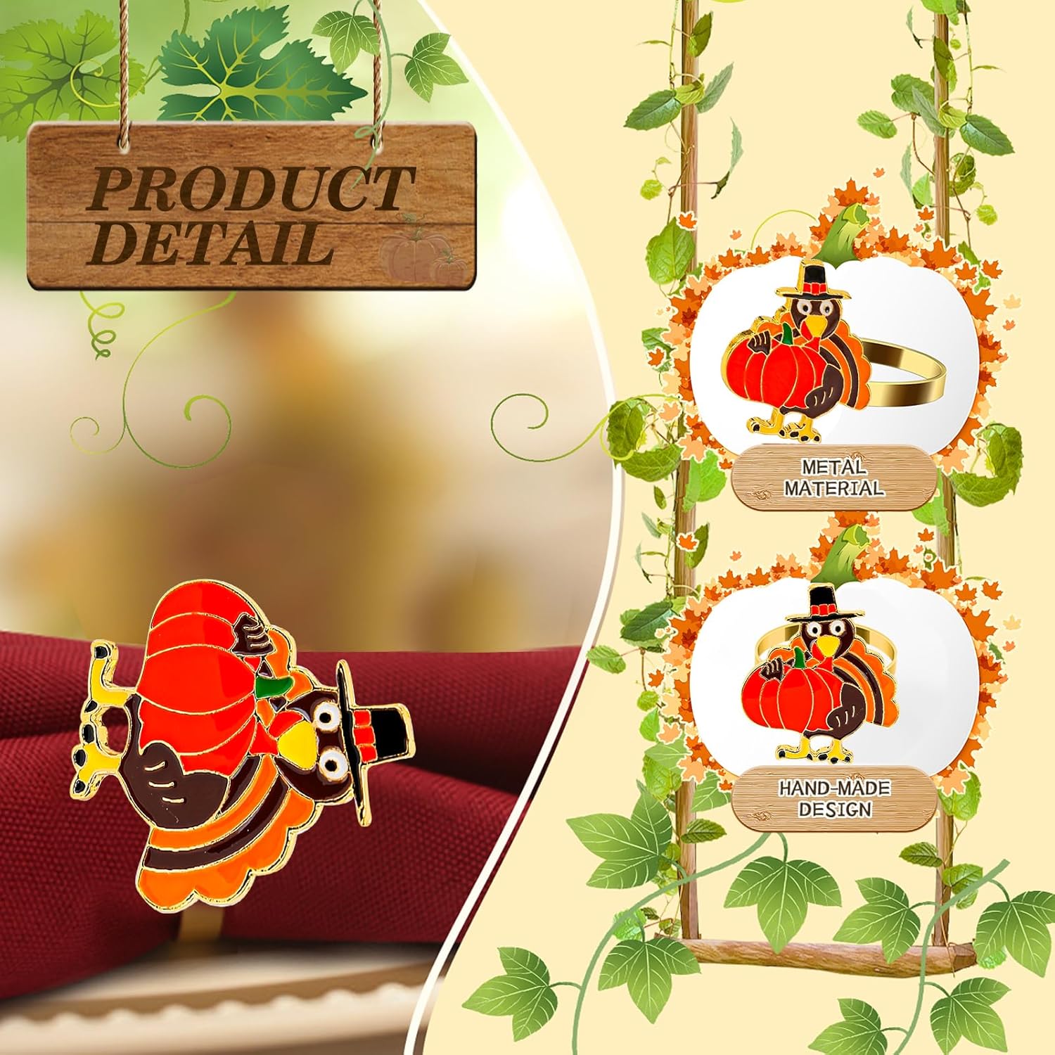 - Thanksgiving Decorations; These napkin rings are designed for Thanksgiving, Halloween, and fall festive,Anillos para servillede de día de acción de gracias make your dining table look more ambivalent
