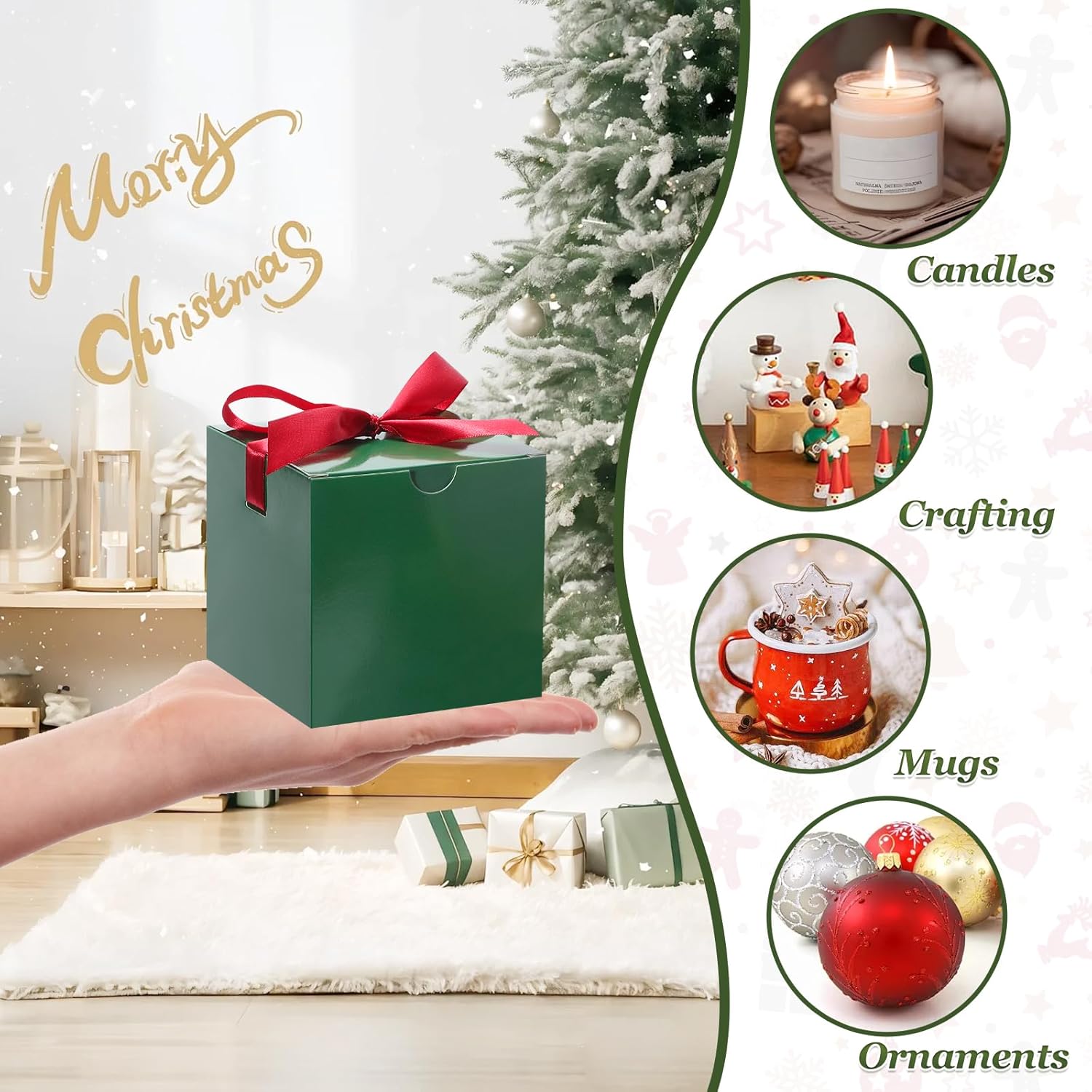 DOYIDE 20 Pack Small Gift Boxes, 6x6x6 Inch Green Elegant Paper Boxes with Ribbons, Christmas Gift Box Crafting, Wedding Party Favor, Cupcake, Candy, Bridesmaids Proposal Box