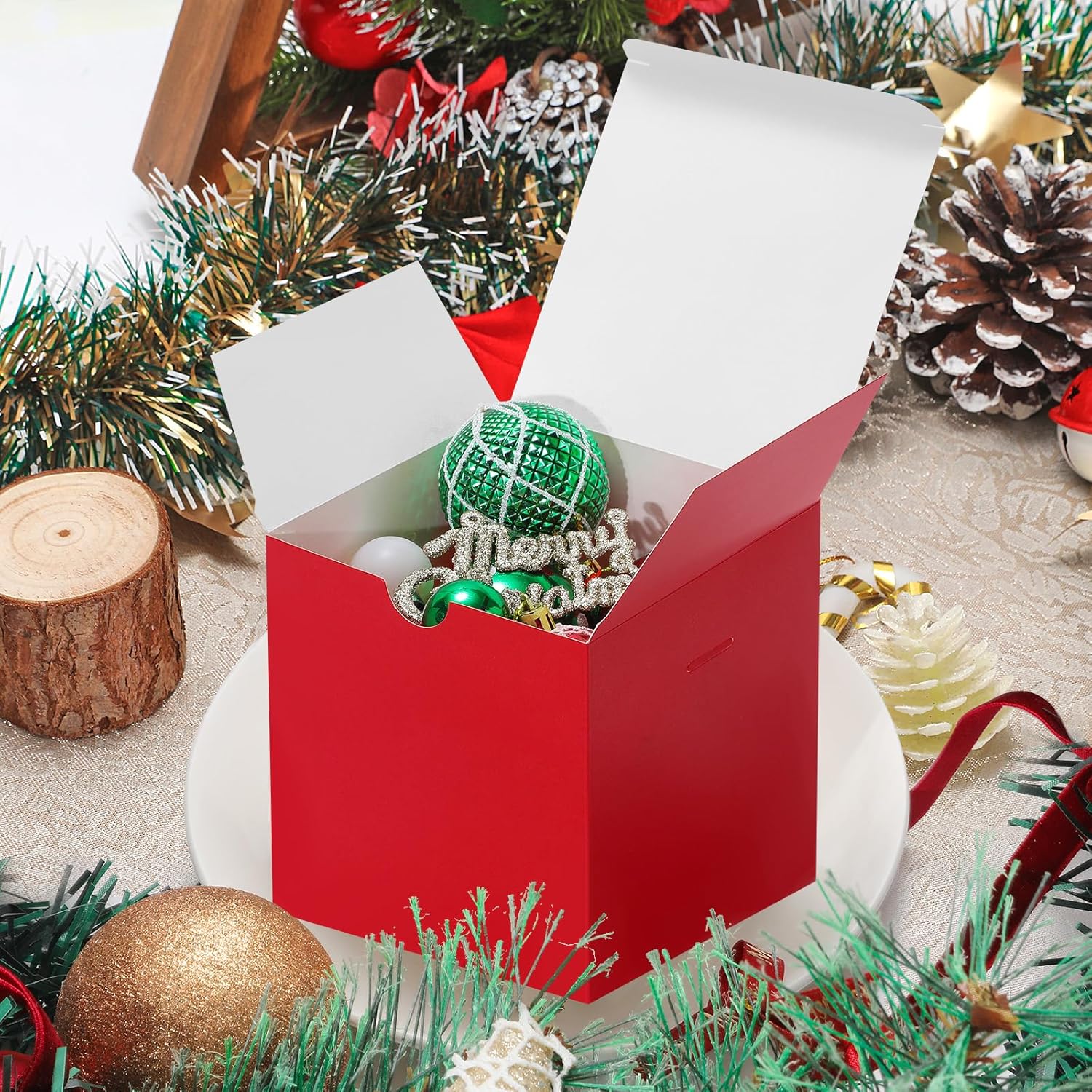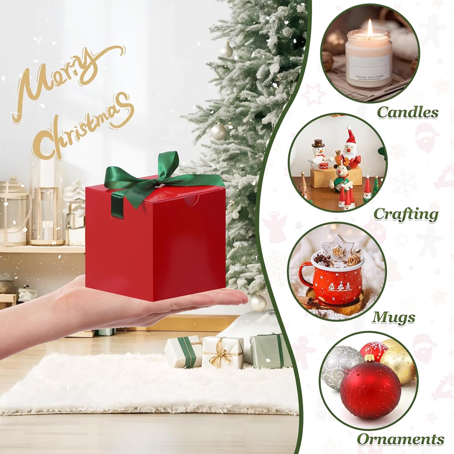 DOYIDE 20 Pack Small Gift Boxes, 6x6x6 Inch Red Elegant Paper Boxes with Ribbons, Christmas Gift Box Crafting, Wedding Party Favor, Cupcake, Candy, Bridesmaids Proposal Box