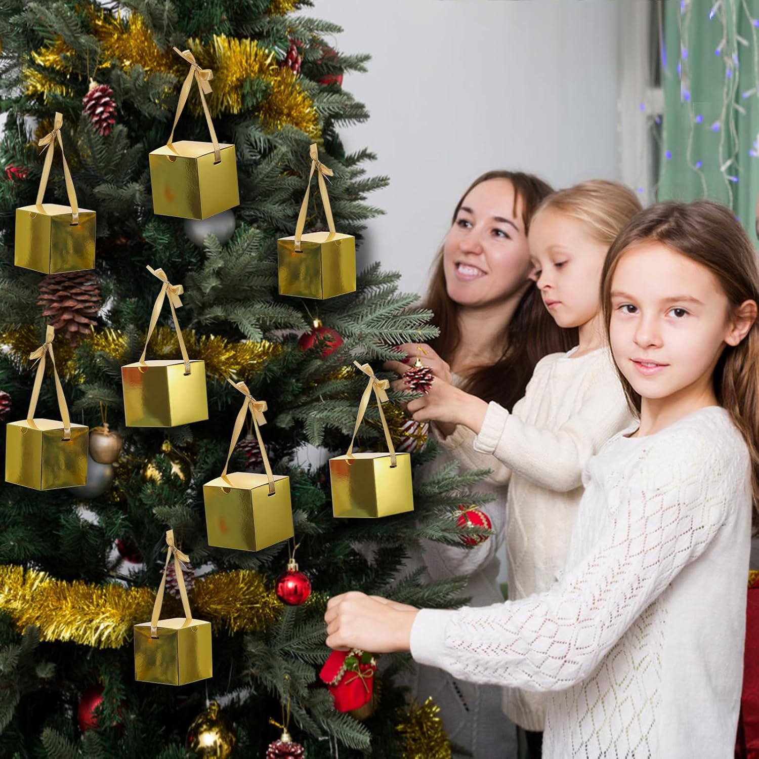DOYIDE 60 Pcs Small Gift Boxes, 3x3x3 inches Kraft Paper Gift Box with Ribbons, Gold Candy Boxes for Christmas Wedding Favors Baby Shower Bridal Shower Birthday Party