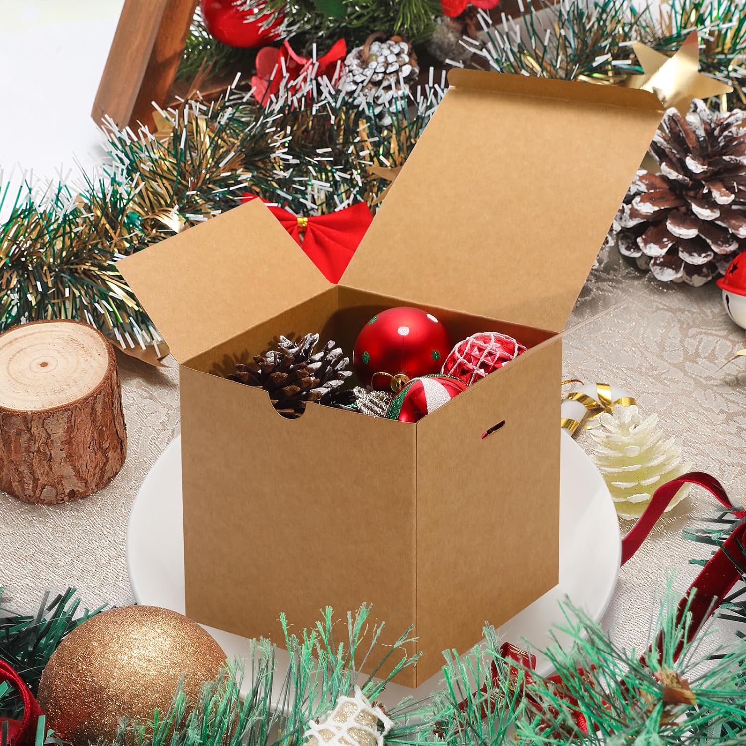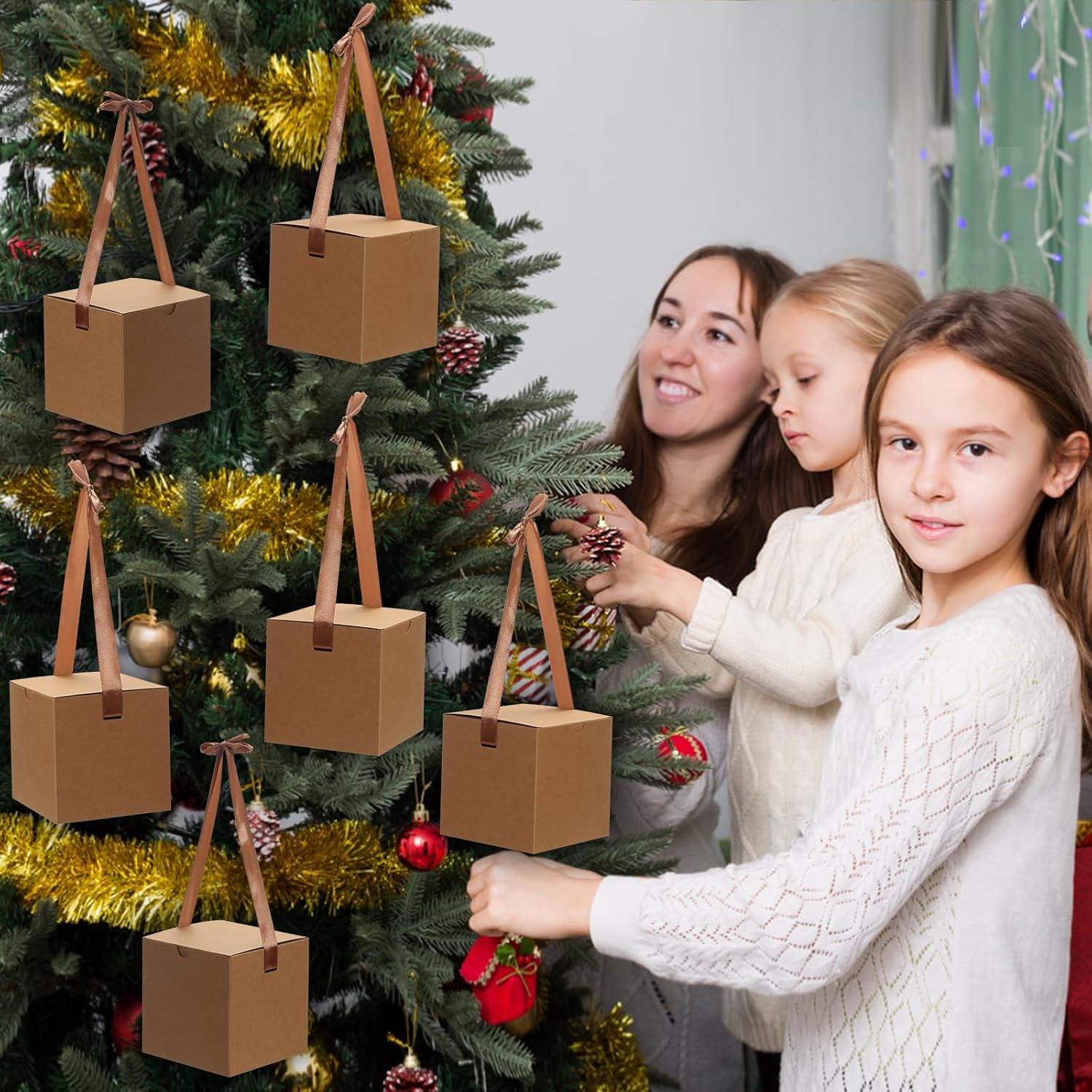 DOYIDE Small Gift Boxes, 20 Pack 5x5x5 Inch Brown Elegant Paper Boxes with Ribbons, Crafting, Christmas Gift Box Wedding Party Favor, Cupcake, Candy, Bridesmaids Proposal Box