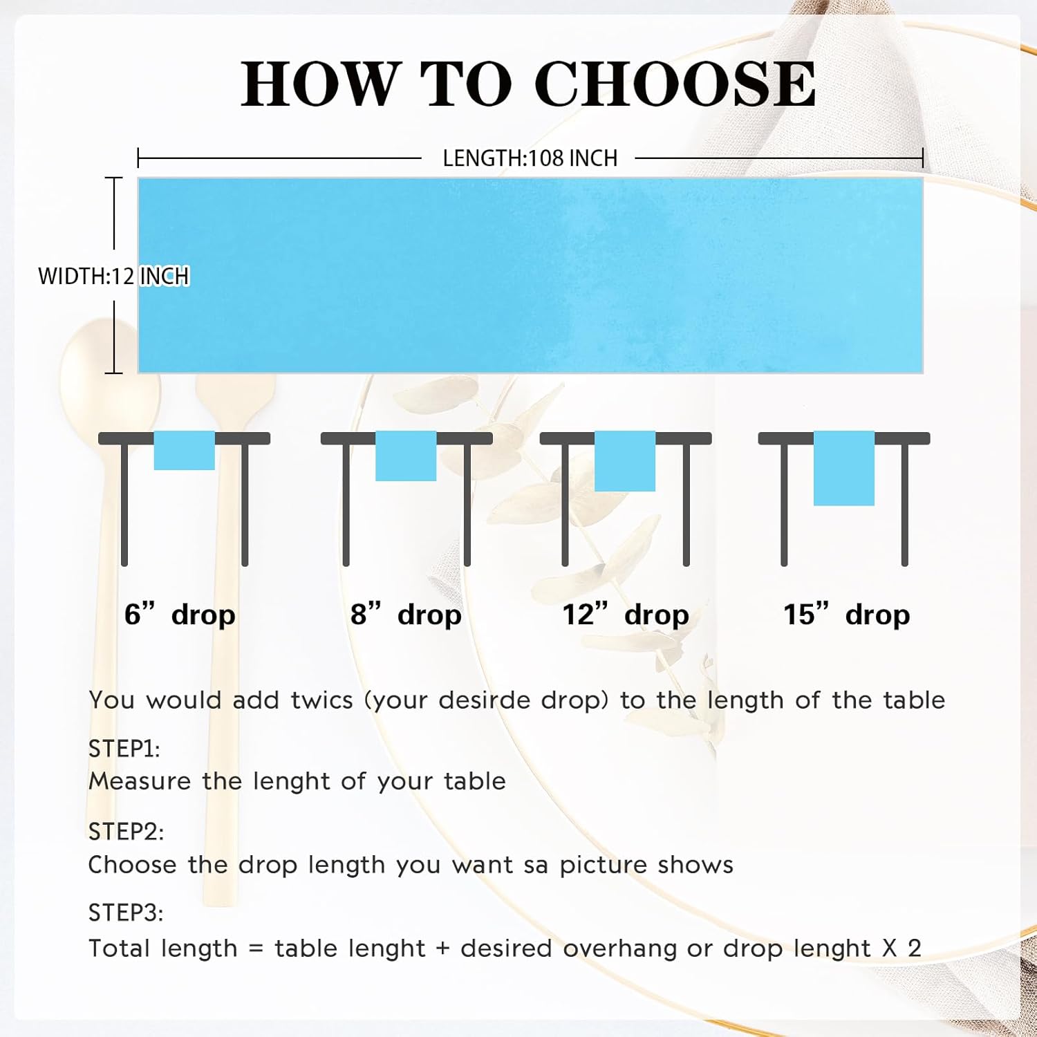 - Package Include: Each blue satin table runner measures 12" x 108", total 10 packs, which is appropriate for rectangle or round tables that can seat 8-10 people.