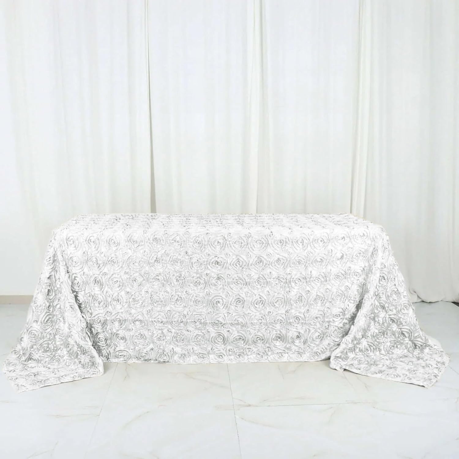Efavormart 90"x132" Wholesale Rectangle Table Cover White Grandiose Rosette 3D Satin Tablecloth for Wedding Party Event Decoration