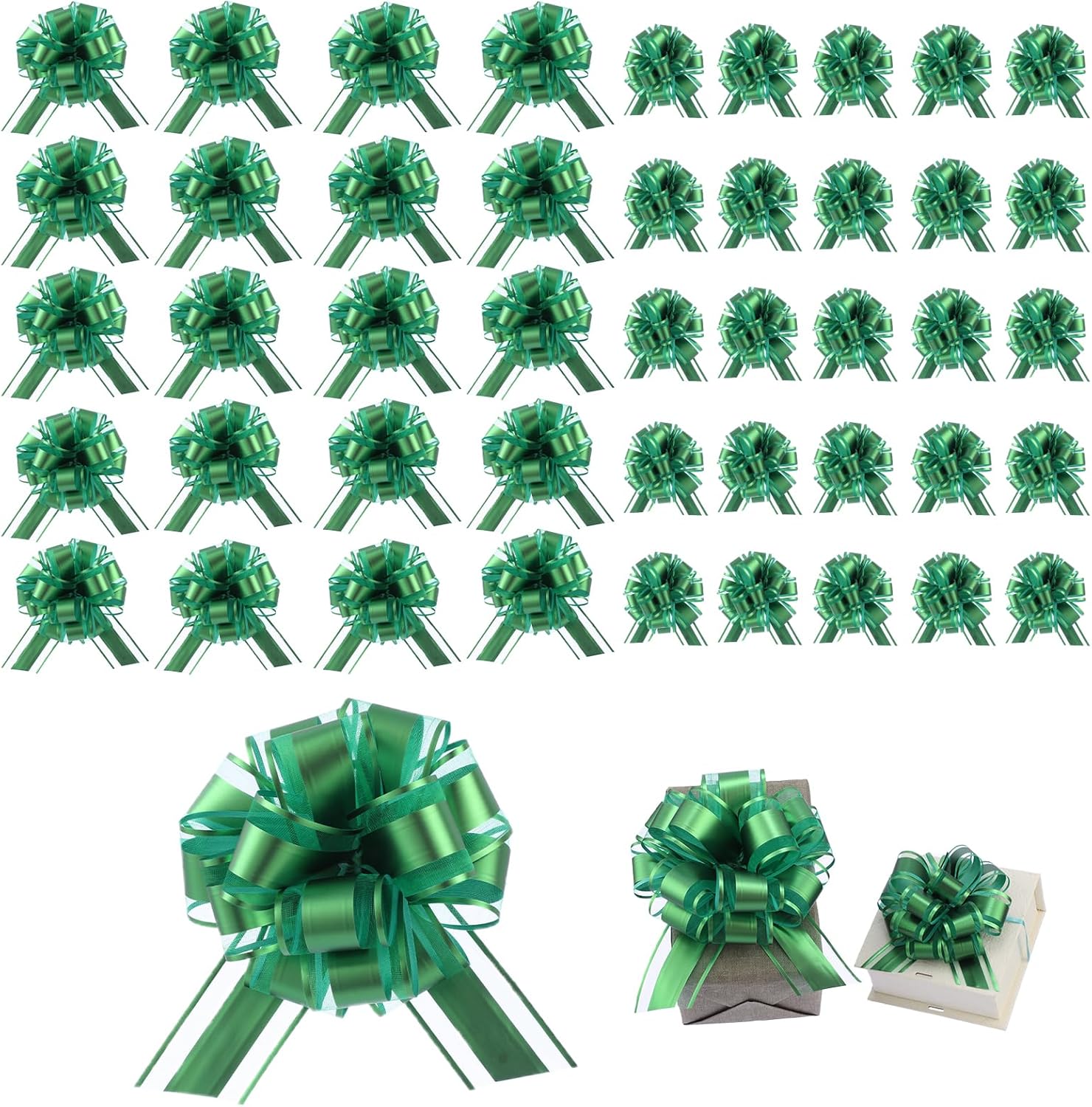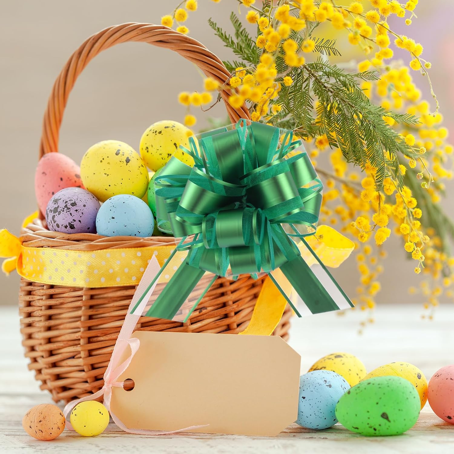 40 Pieces 6 Inches and 3 Inches Pull Bow Wrapping Pull Bow Ribbon Pull Bows for Wedding Baskets,Large Bows for Presents. (Green)