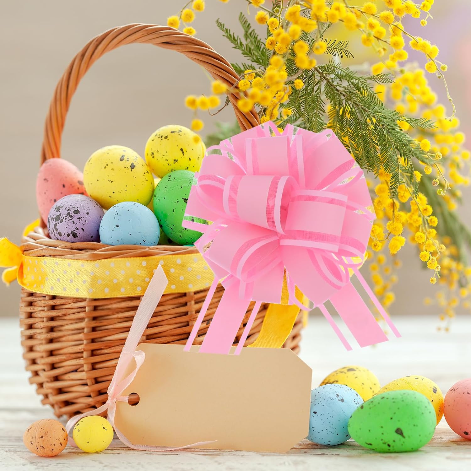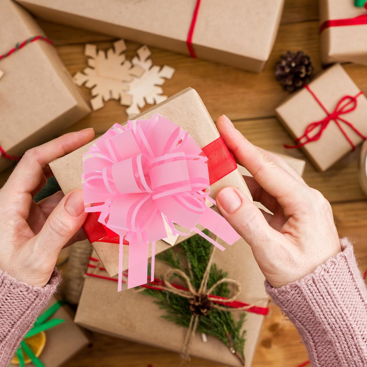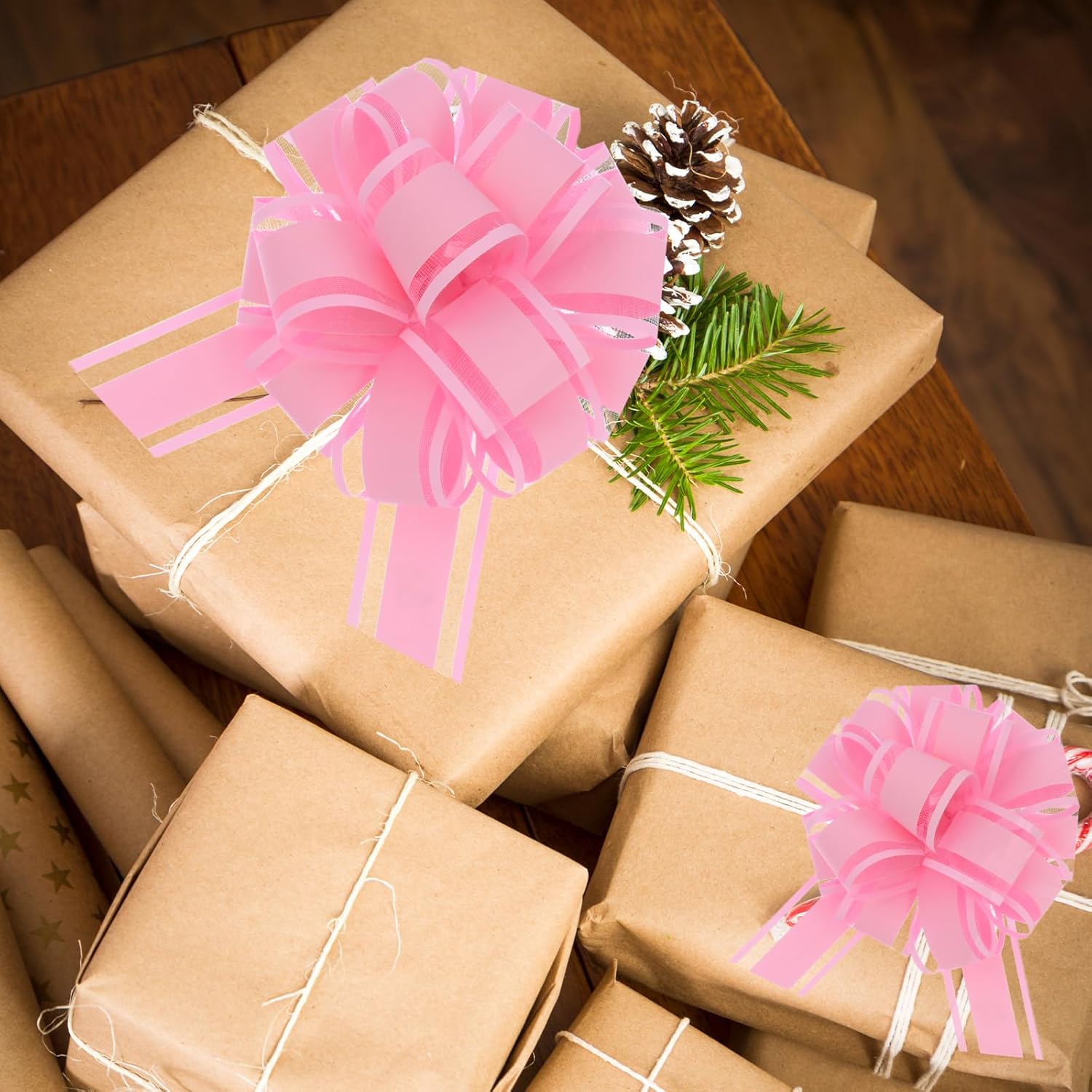 40 Pieces 6 Inches and 3 Inches Pull Bow Wrapping Pull Bow Ribbon Pull Bows for Wedding Baskets,Large Bows for Presents. (Pink)