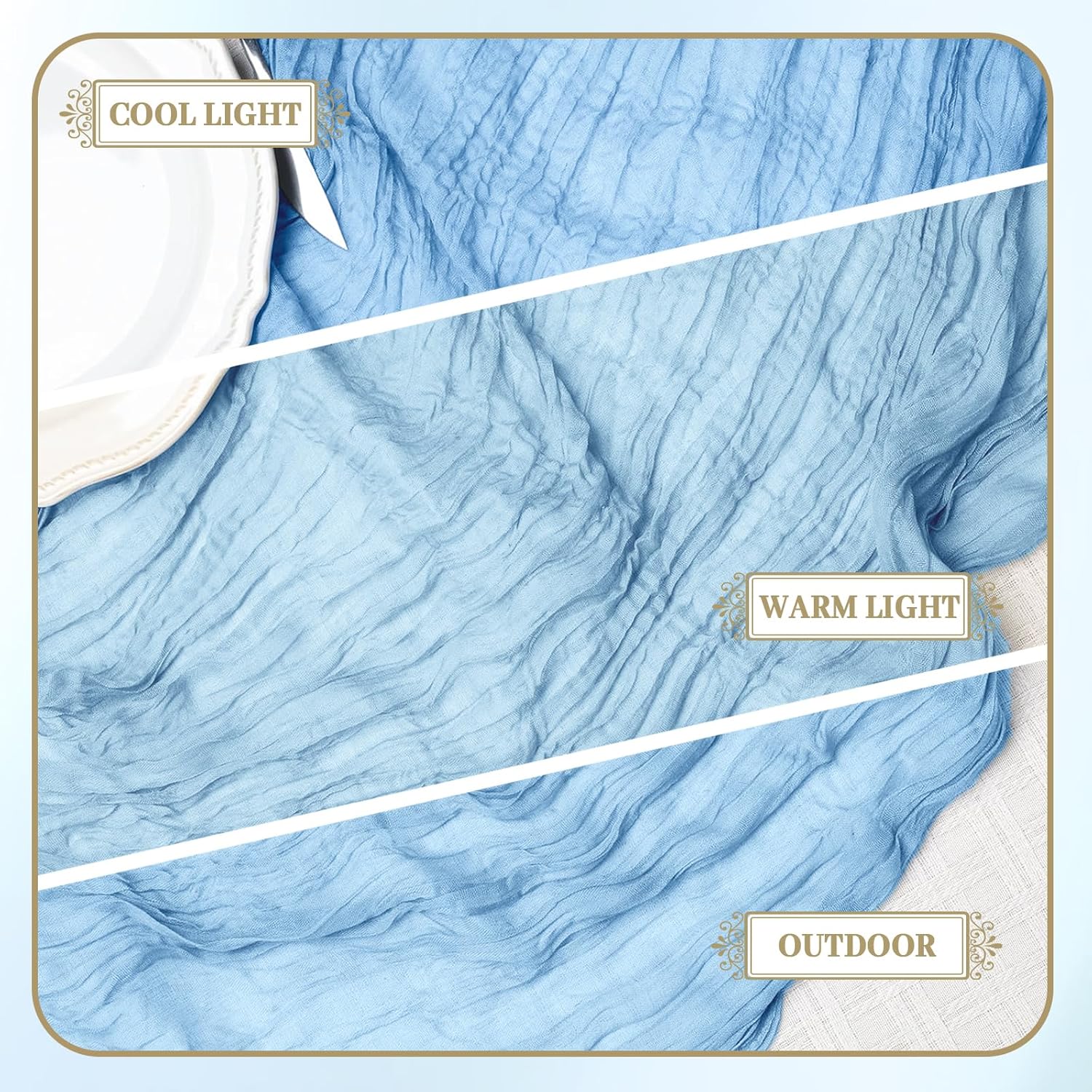 Le courant 6pcs 10Ft Cheesecloth Table Runner, Rustic Boho Gauze Cheese Cloth Runner Table Runner for Weddings Bridal Baby Shower Birthday Holiday Parties Home Decor, Baby Blue