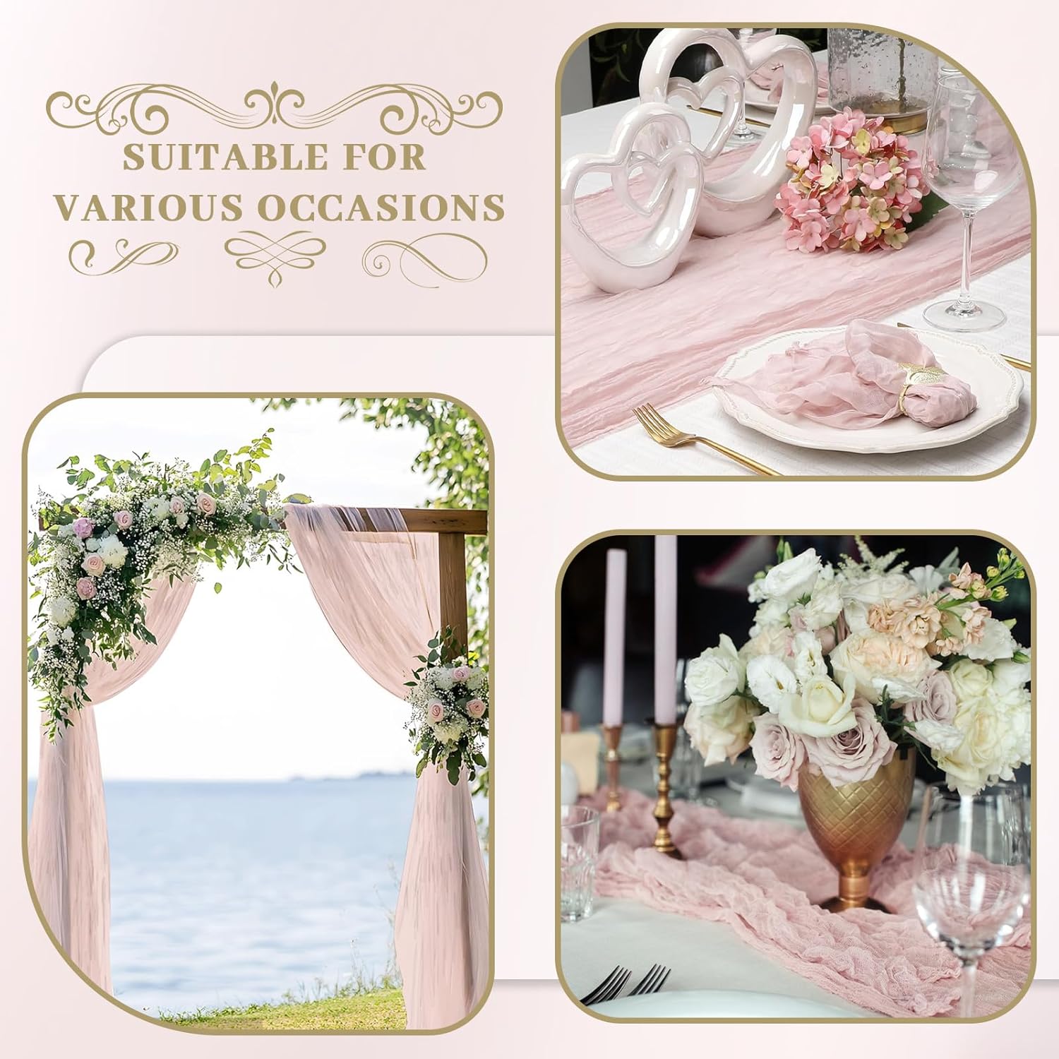 Le courant 6pcs 10Ft Cheesecloth Table Runner, Rustic Boho Gauze Cheese Cloth Runner Table Runner for Weddings Bridal Baby Shower Birthday Holiday Parties Home Decor, Dusty Pink