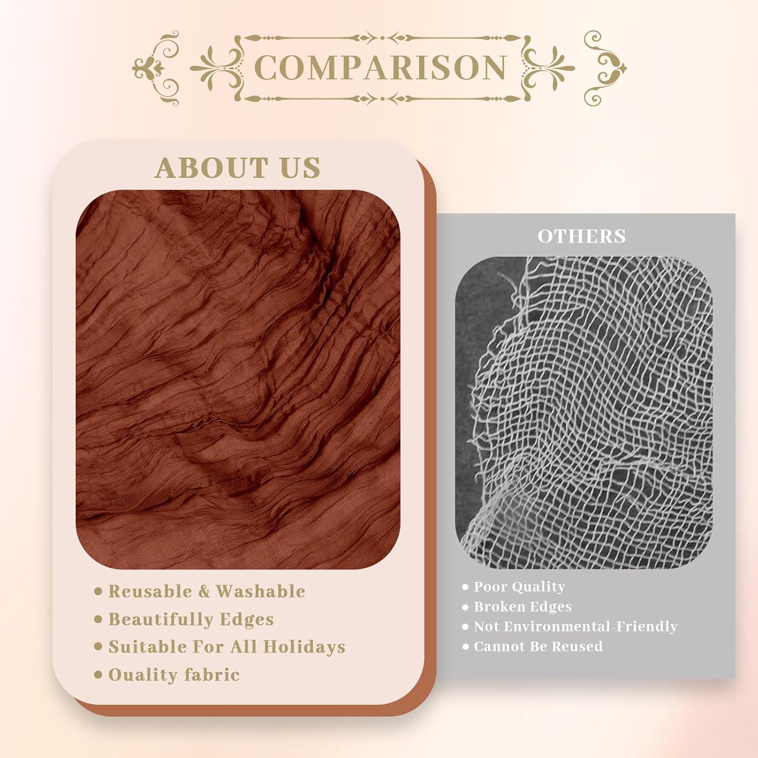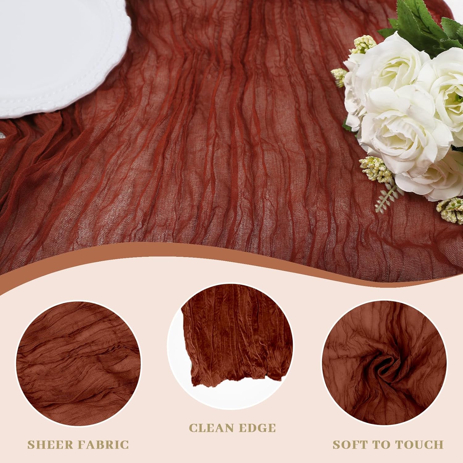 Le courant 6pcs 10Ft Cheesecloth Table Runner, Rustic Boho Gauze Cheese Cloth Runner Table Runner for Weddings Bridal Baby Shower Birthday Holiday Parties Home Decor, Terracotta