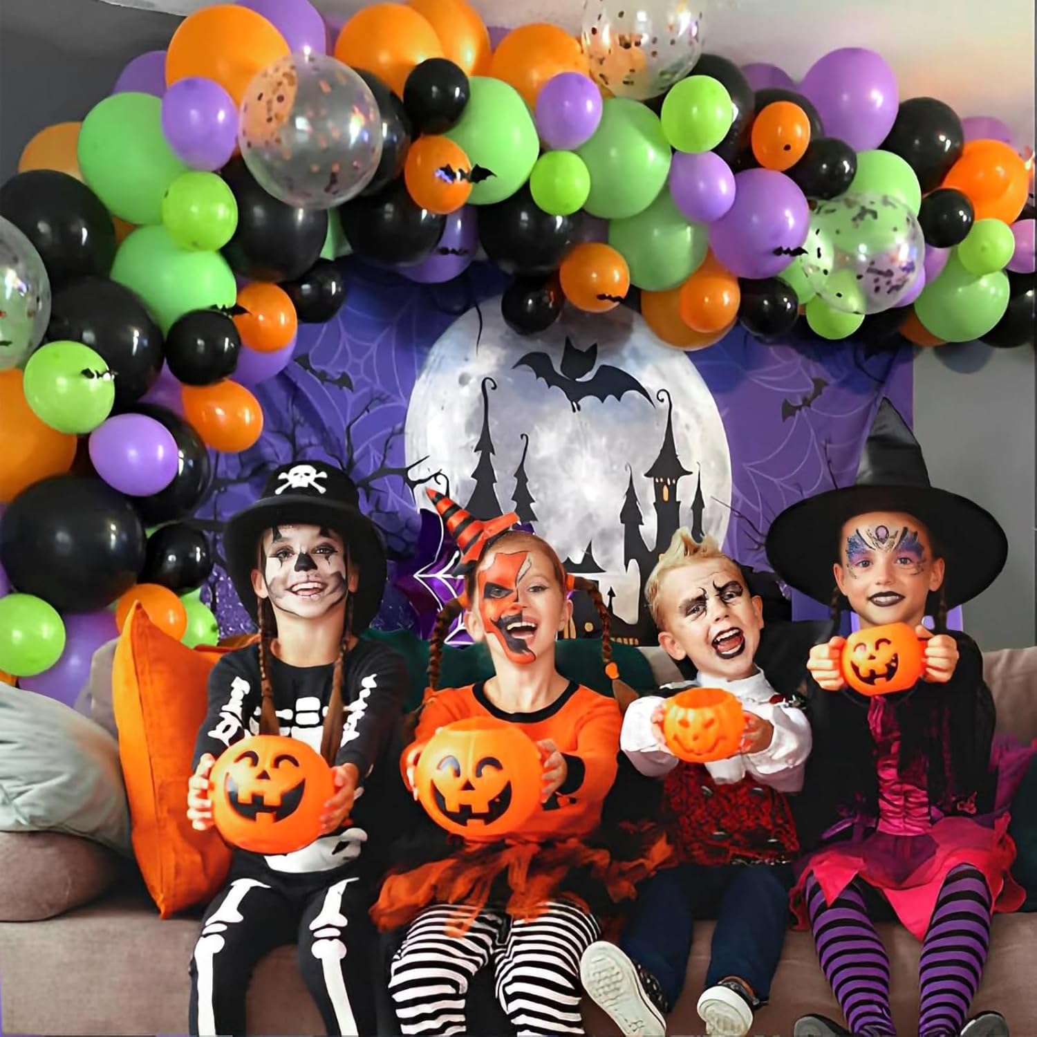 - Package Include: Our orange and black balloons kit includes 10 pcs green balloons, 10 pcs orange balloons, 10 pcs black balloons, 10 pcs purple balloons, 10 pcs purple, black mix orange confetti balloons, 1 orange ribbon and 1 black ribbon