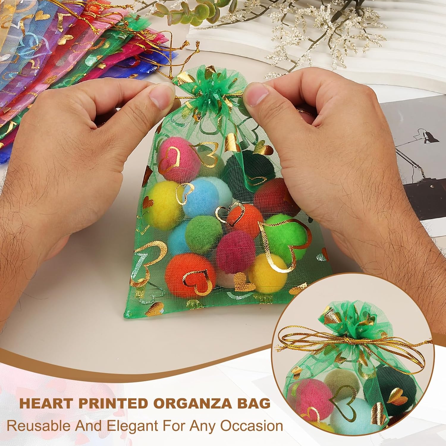 - Premium Polyester Material: Lightweight yet durable, sheer fabric showcases contents beautifully while resisting tears and fraying. Heart-printed organza bags make a great gift for your mother, family, friends, and co-workers