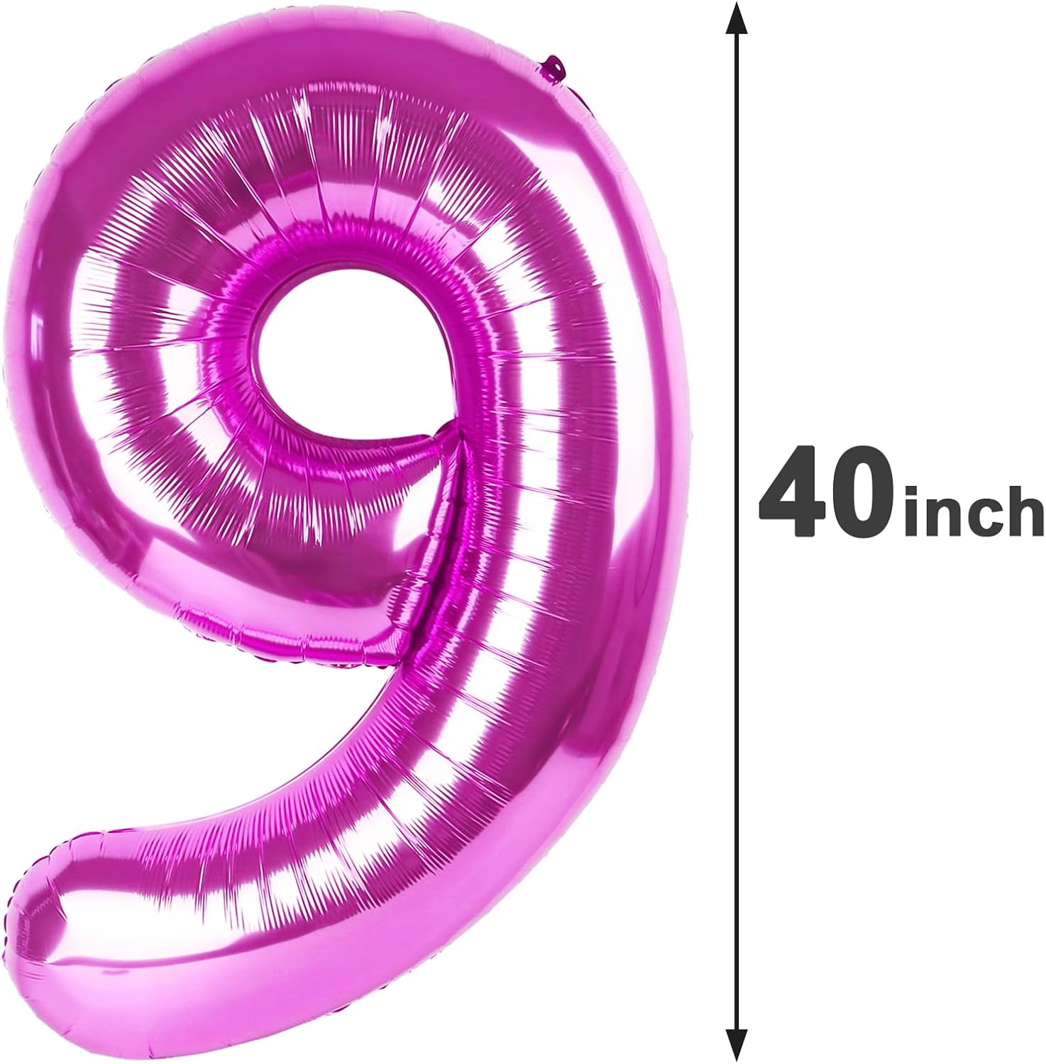- 1.Make Party Charming with Rosy Purple Number Balloon:You will receive an uninflated 40 inch number 9 balloon.Large number balloons are always the best statement of romance and surprise.Rosy purple balloons symbolize vitality exoticism,adding glamour to birthday parties.Bright metallic rosy purple and huge size make birthday decorations for men a highlight of special parties.Choose one or more numbers from 0-9 number balloon,and use 9 19 29 69 90 99 balloon numbers to create a lively party!