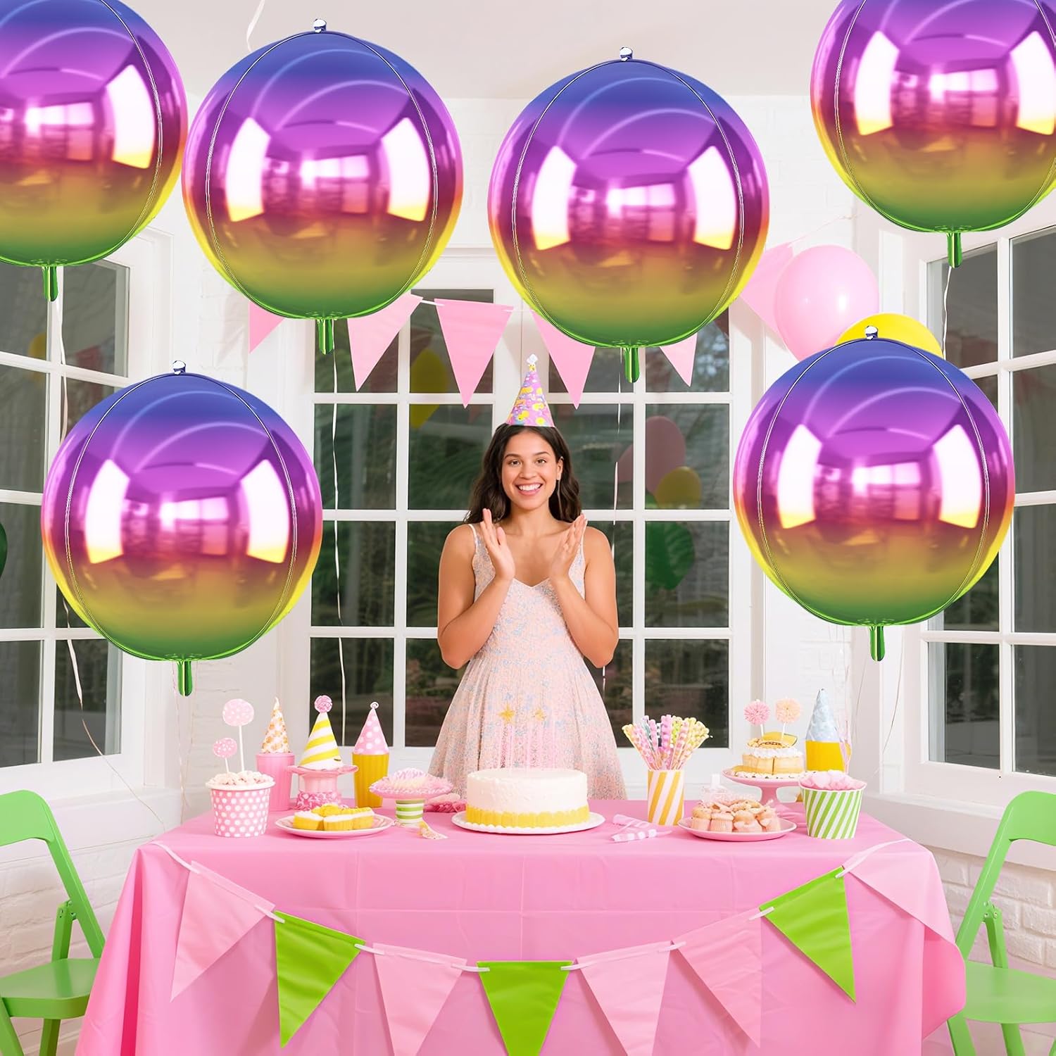 6Pcs Gradient Rainbow Round Foil Balloons, 22" Large Helium Colorful Ball Balloon, Metallic Multicolor Iridescent Mylar Balloon for Birthday Graduation Wedding Anniversary Disco Prom Party Decorations