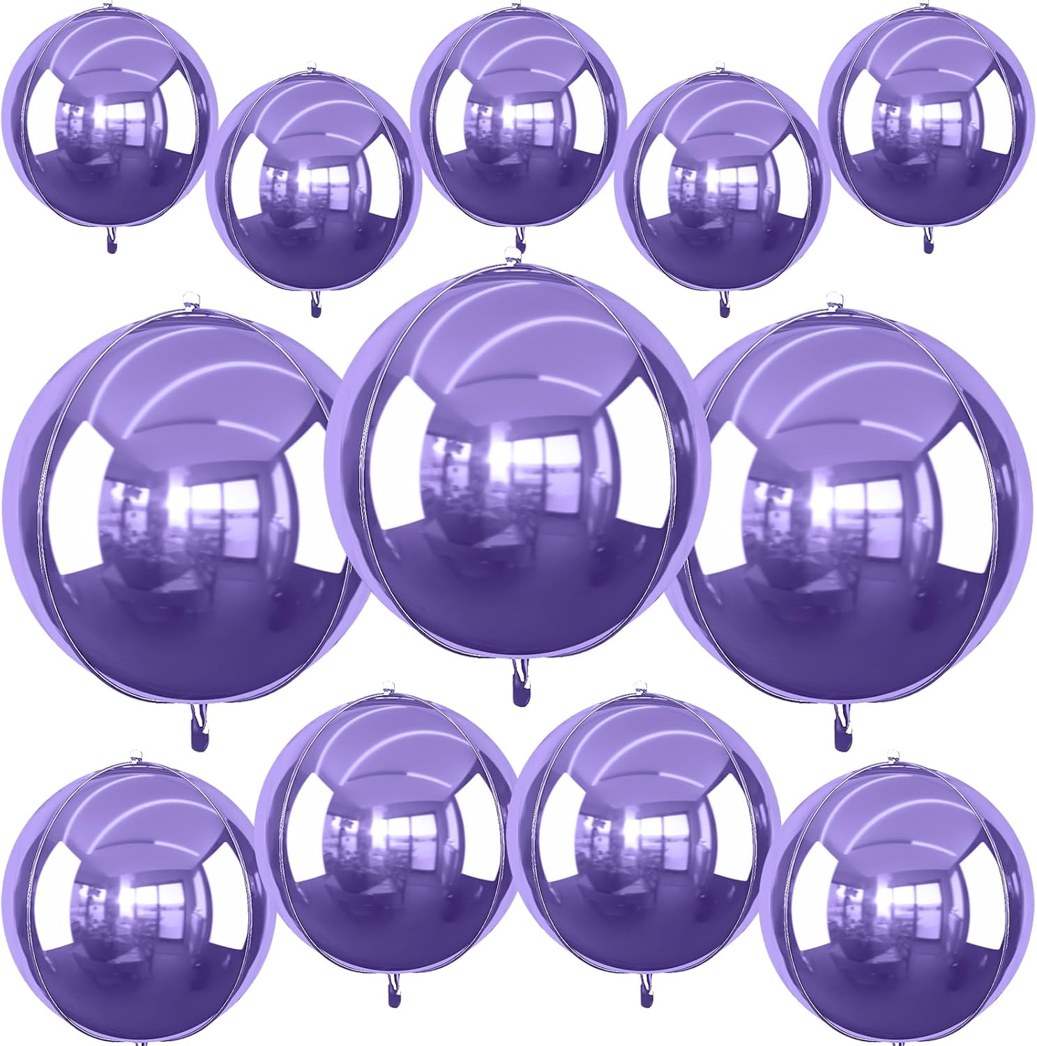 - Package: You will receive 12pcs 4D light purple round foil balloon, 3pcs 22inch + 4pcs 15inch + 5pcs 10inch + 1 straw + 1 roll of ribbon. Different sizes balloons in can meet your party needs. 10inch mini size balloons do not support helium filling and floating. The classic solid purple chrome balloons are perfect for any purple-themed party.