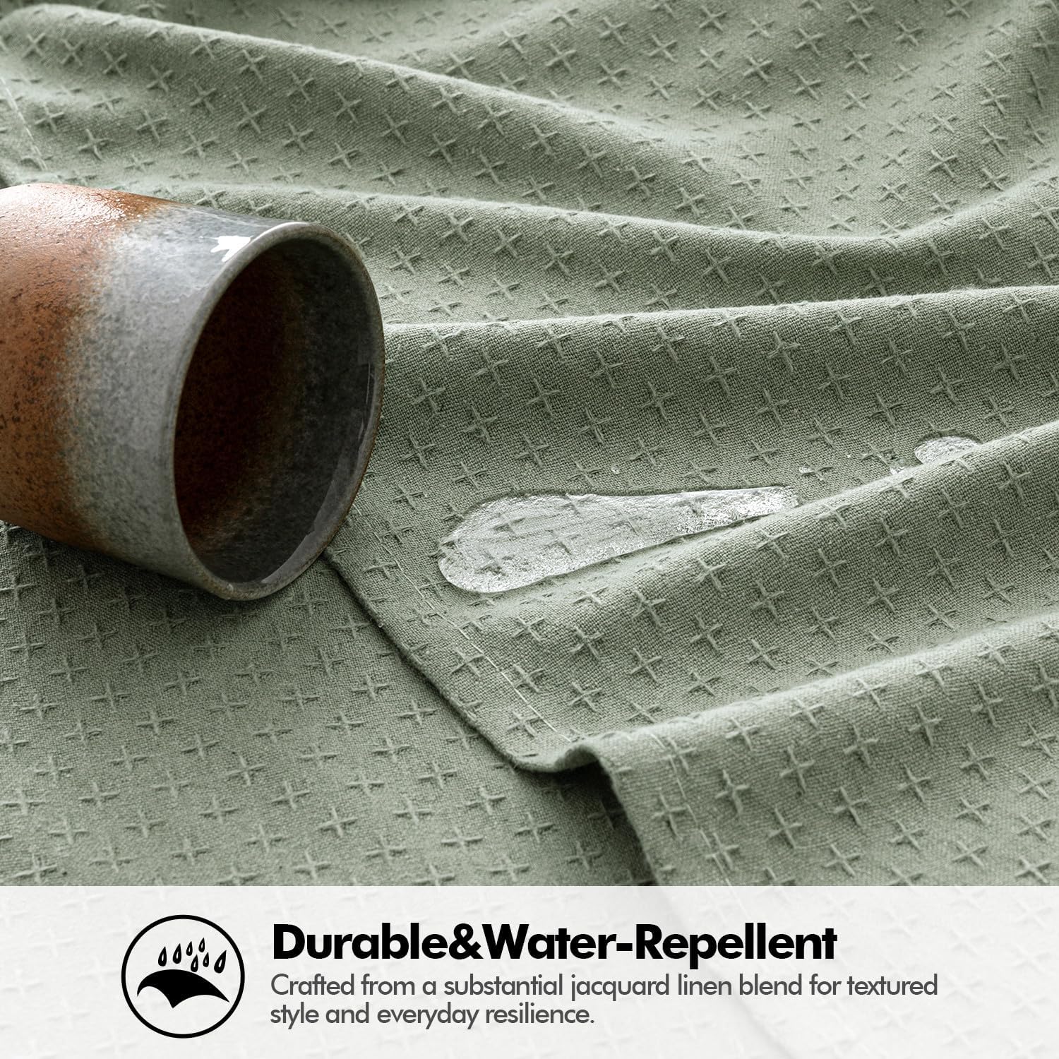 - Elegant Texture: Expertly woven from a heavy-duty cotton-linen blend, 30% thicker than standard tablecloths. Designed with a refined cross-star jacquard weave, it offers a luxurious and elegant look. Sage Green is subtle and earthy, bringing a calming, natural touch to your meals.
