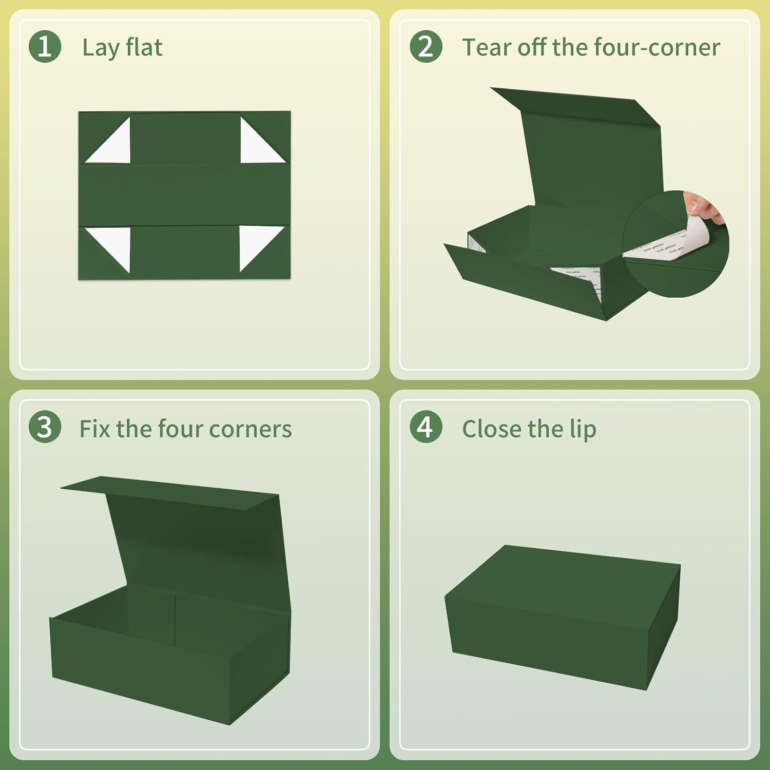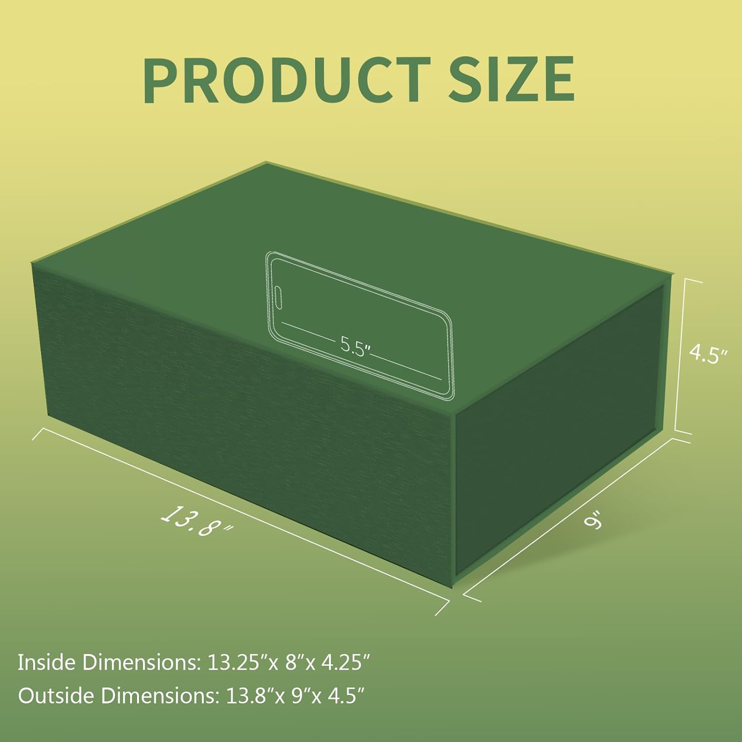 - FRIENDLY DESIGN: This green gift box has a sturdy magnetic closure that can be easily opened and closed again and again. The surface of the box is printed with special texture and elegant shape.