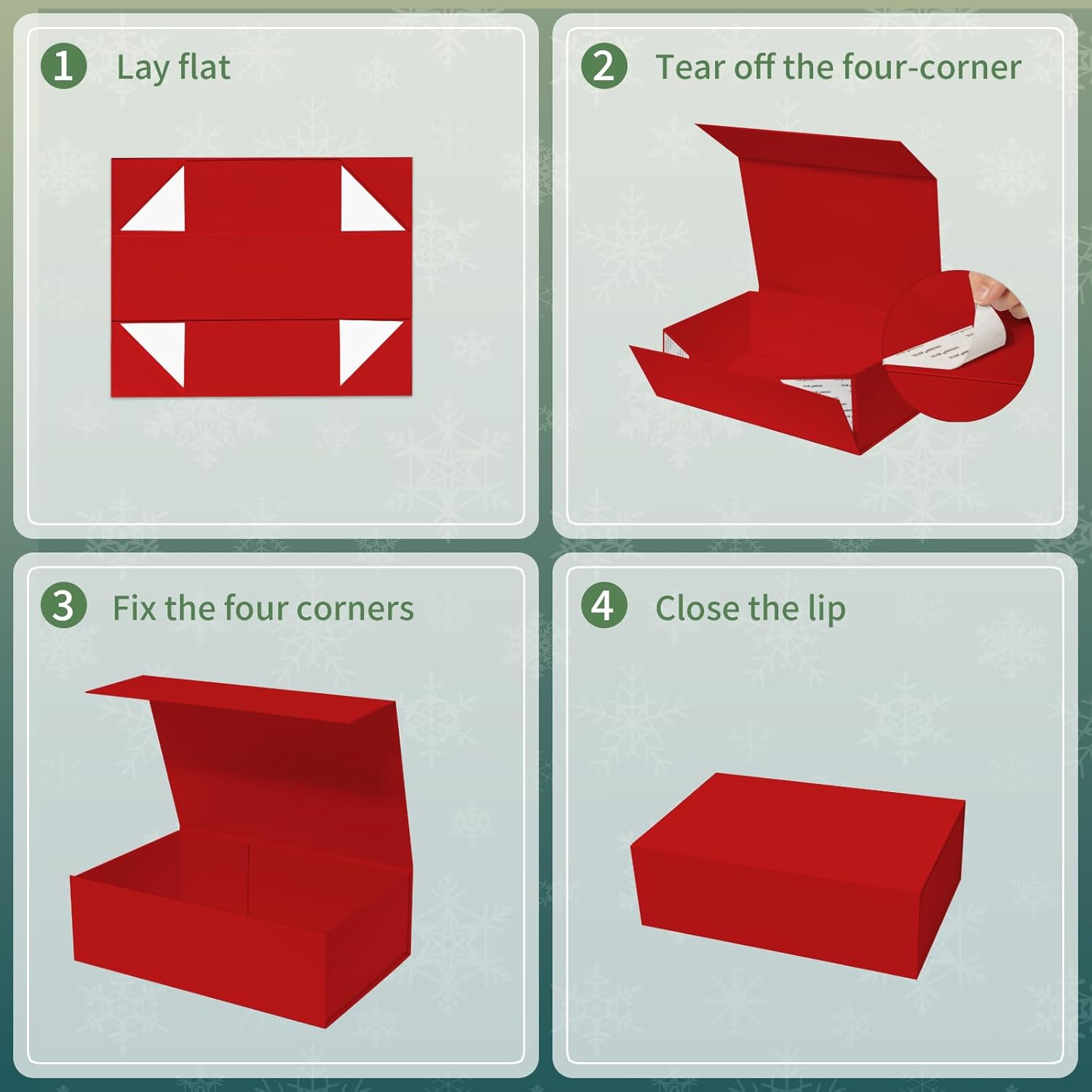 - FRIENDLY DESIGN: This Christmas red gift box has a sturdy magnetic closure that can be easily opened and closed again and again. The surface of the box is printed with special texture and elegant shape.