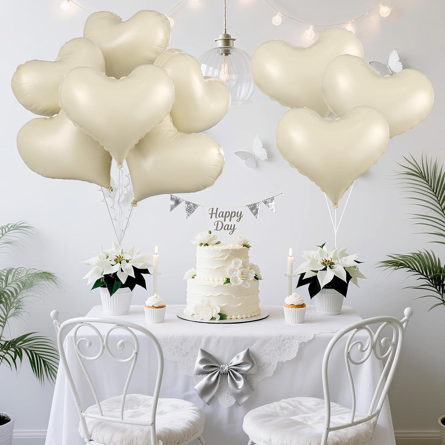 - Package: This set includes 6pcs of 24inch cream white heart foil balloons,1 ribbon,and 1 straw.The generous size makes these balloons perfect for transforming any space into a festive celebration venue, whether you're decorating for a wedding arch, photo backdrop, or party centerpiece.