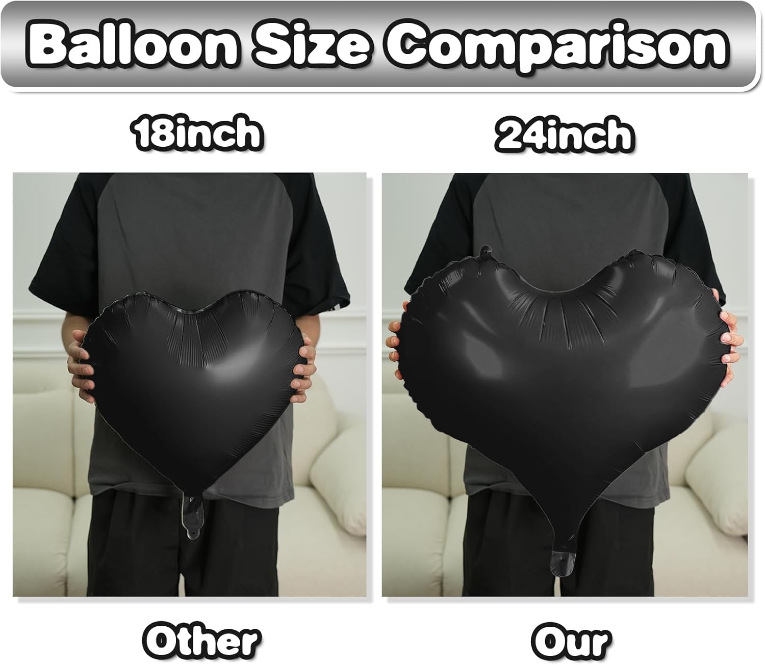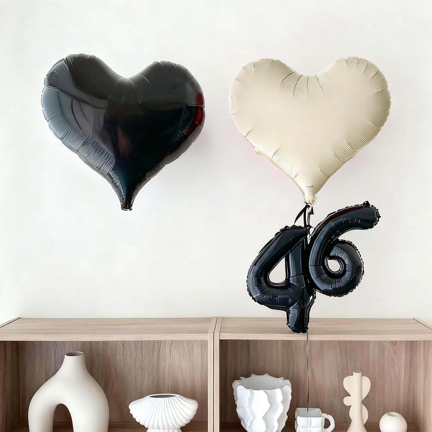 - Package: This set includes 6pcs of 24inch heart foil balloons(black*3,cream white*3),1 ribbon,and 1 straw.The generous size makes these balloons perfect for transforming any space into a festive celebration venue, whether you're decorating for a wedding arch, photo backdrop, or party centerpiece.