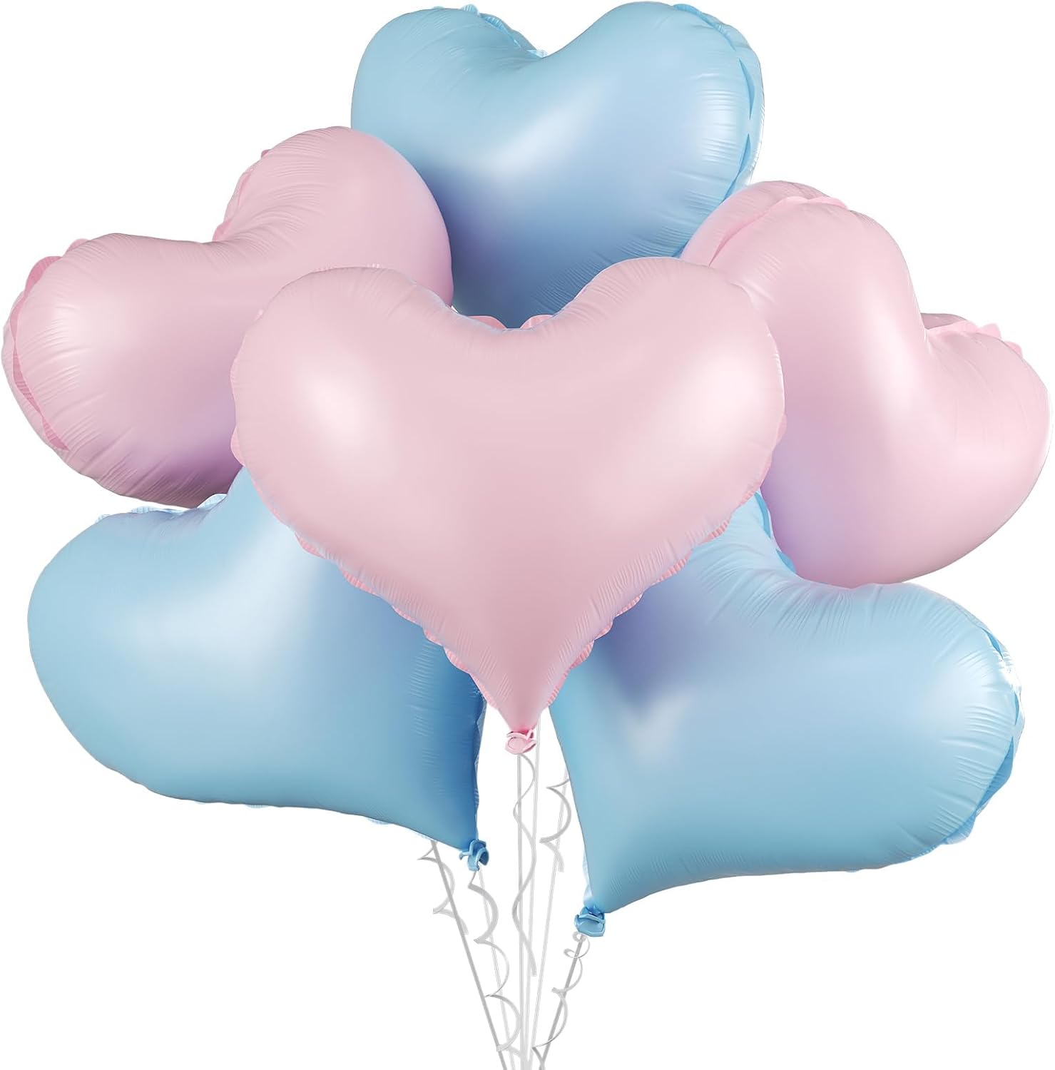 - Package: This set includes 6pcs of 24inch heart foil balloons(blue*3,pink*3),1 ribbon,and 1 straw.The generous size makes these balloons perfect for transforming any space into a festive celebration venue, whether you're decorating for a wedding arch, photo backdrop, or party centerpiece.