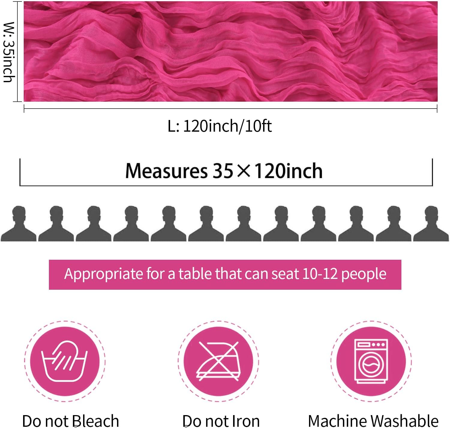- 🌷【Long Pink Centerpieces for Table】The size of each cheesecloth table runner hot pink is approximately 35 x 120 inches / 90 x 305 cm, which is large enough to cover rectangle and round tables, magenta cheesecloth table runner can also be spliced together for long tables. A simple and easy way to dress up a table as wrinkled design no ironing is required & they add a soft touch to your decor! The fluffy hot pink gauze table runner 10ft can be compressed, lightweight, and compact, easy to store, more space-saving.