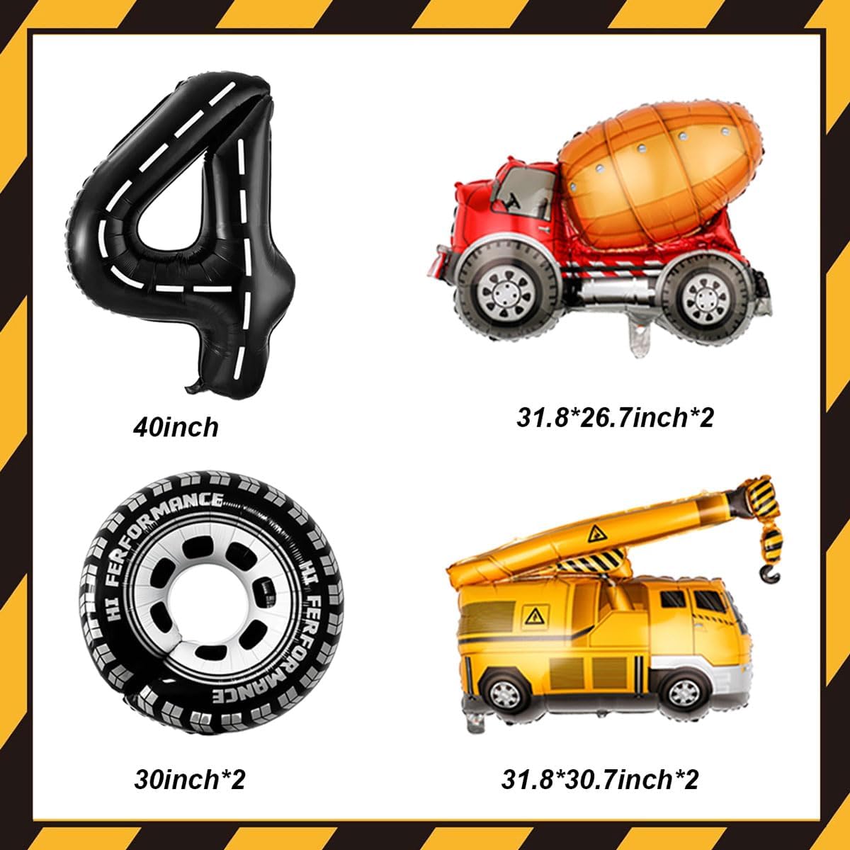 Construction Balloons 4rd Birthday Decorations for Boys 40inch Number 4 Balloons Truck Foil Balloon for Construction Birthday Party Decorations Supplies