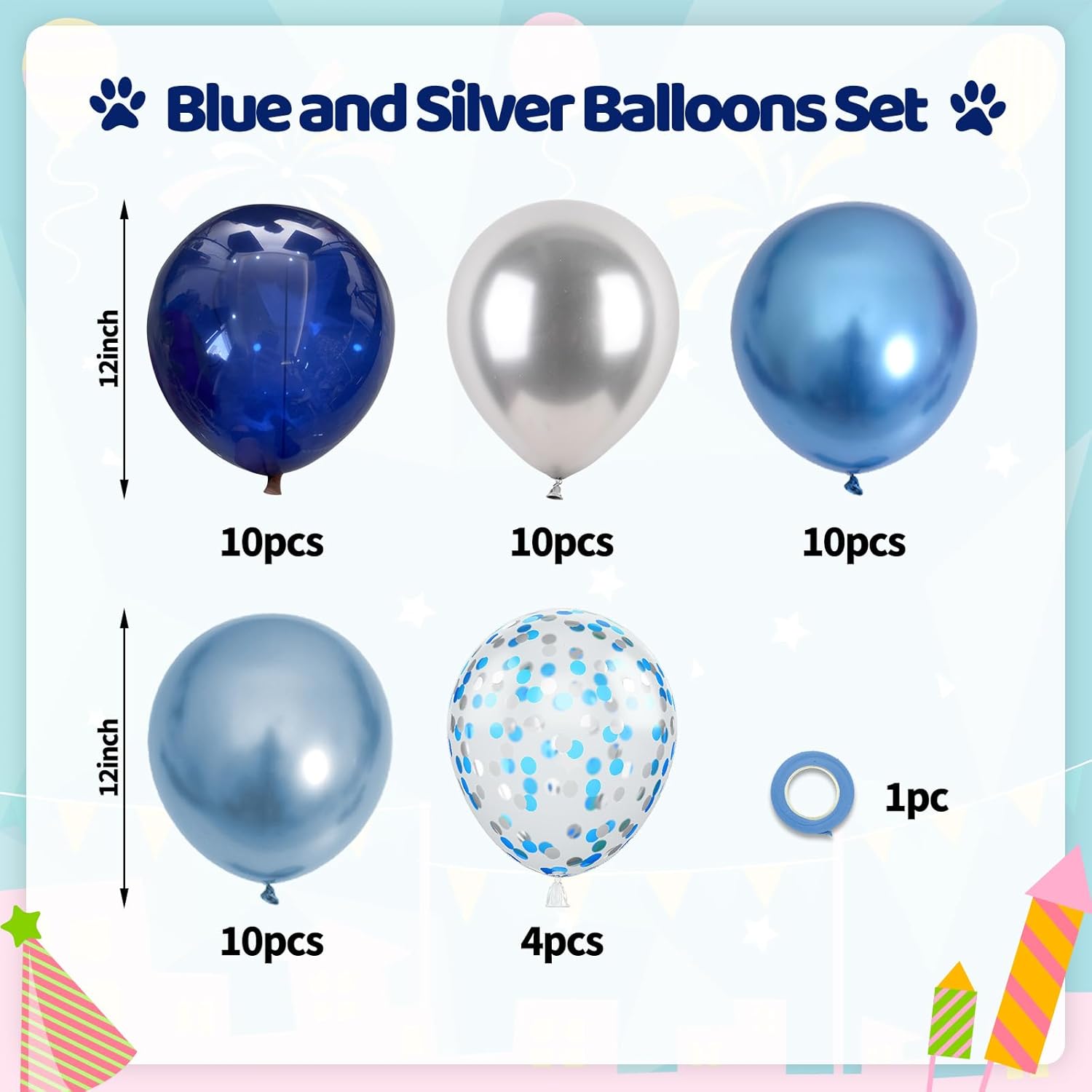 - What You Get - The royal blue silver balloons include 50 balloons, 6 distinct colors: Retro translucent blue balloons x 27, metallic silver balloons x 6, metallic blue balloons x 6, metallic baby blue balloons x 6, blue silver confetti balloons x 5. Accompanying by a 10m ribbon. These striking and captivating hues will beautifully enhance your memorable and enjoyable moments!