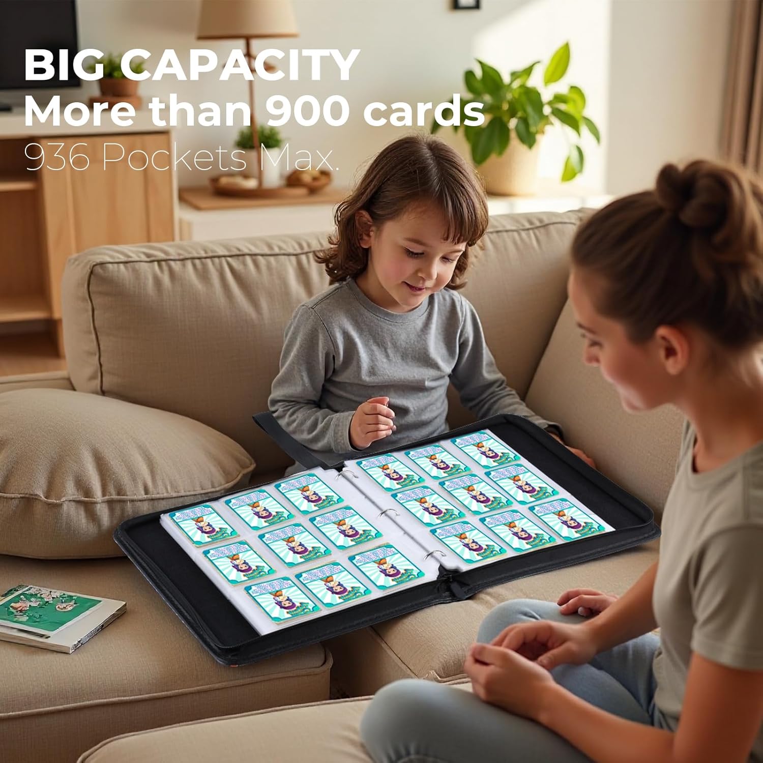 Premium ZiP Trading Cards Binder 9 Pockets, 936 Cards, Large Cards Book Album with Front Window & Lable Pocket, Card Collection Folder for TCG, MTG, Baseball, Football, Soccer and Games Cards