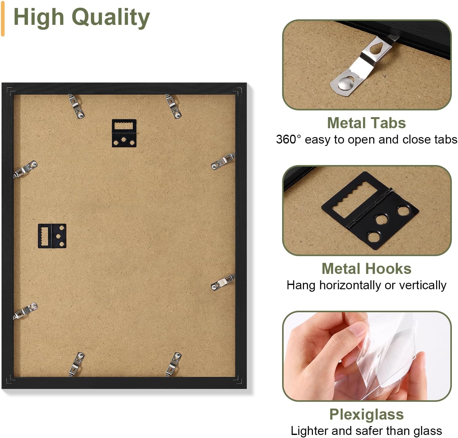 - Ease of Use: The collage frame features a quick-release back panel with flexible tabs for effortless photo switchs in seconds. Pre-installed hooks allow instant wall mounting horizontally or vertically