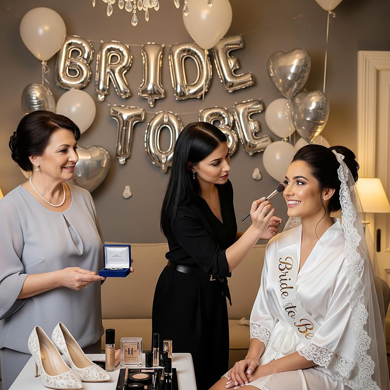 - This kit provides everything to create a fully coordinated and glamorous bridal theme. Beyond the elegant balloons, you get prominent silver "BRIDE TO BE" foil letters, romantic silver heart-shaped foil balloons, celebratory champagne bottle foil balloons, an impressive diamond ring foil balloon, a beautiful veil, and a chic sash. This ensures a cohesive and immersive setting for capturing those precious pre-wedding memories.