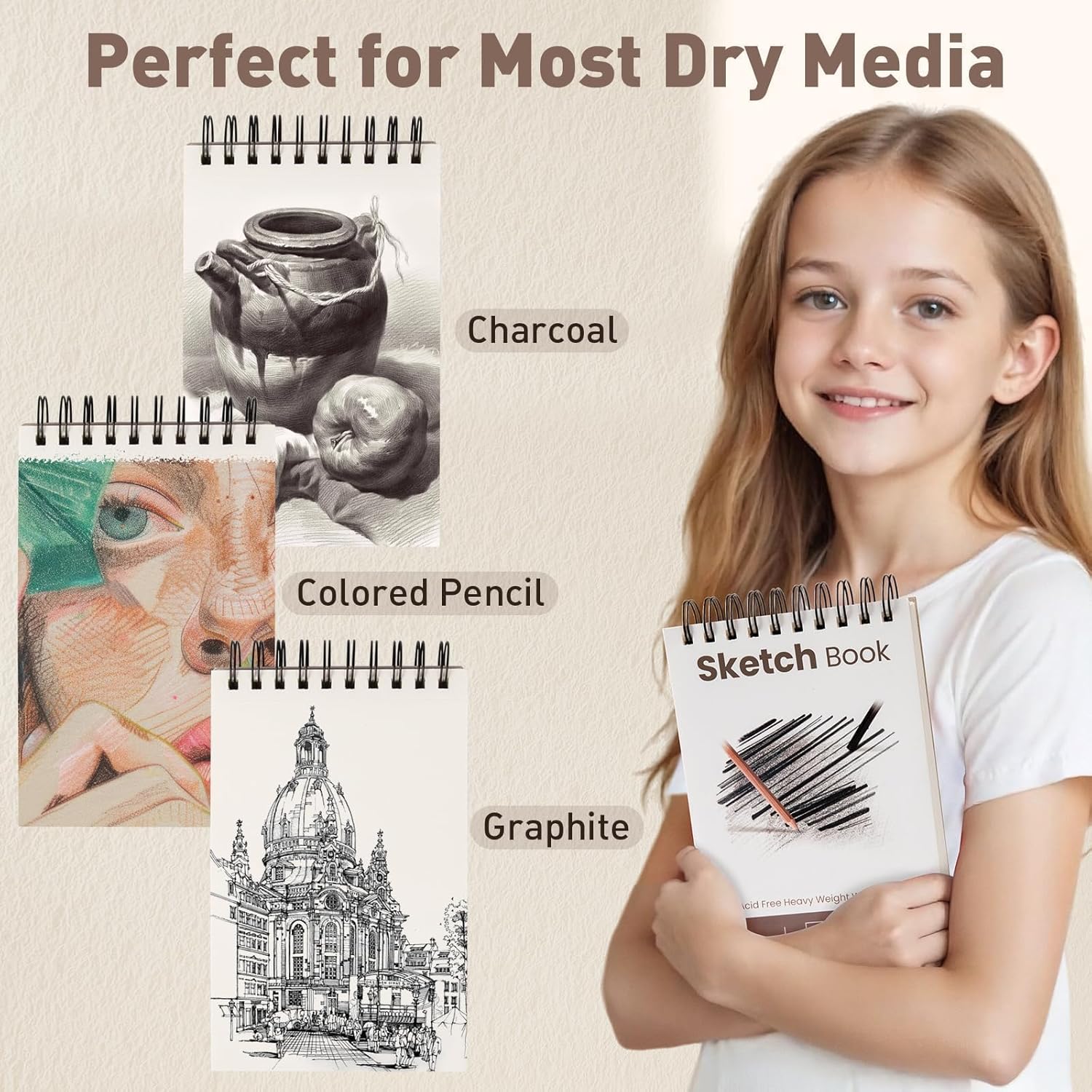 - Portable Size with Sturdy Backing: 5.5"×8.5" Lightweight sketch pads for drawing pairs with warp-resistant rigid backing fully protects against bending, splashes, and backpack bumps—no extra support needed, so you can create anytime, anywhere when inspiration strikes
