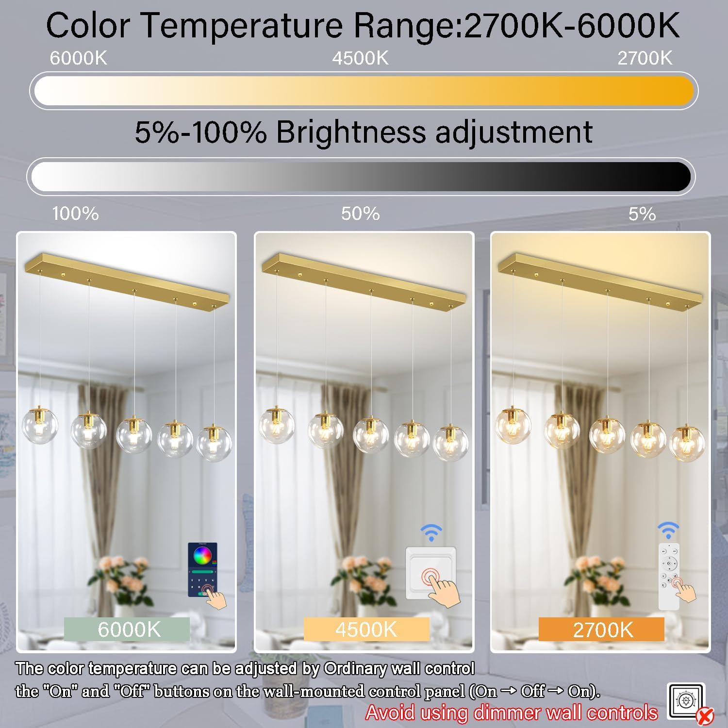 - 【Smart LED Chandelier 】It is equipped with a remote control and APP control for seamless dimming between warm white (2700K) and cold white (6000K), as well as adjustable brightness ranging from 5 to 100 percent.