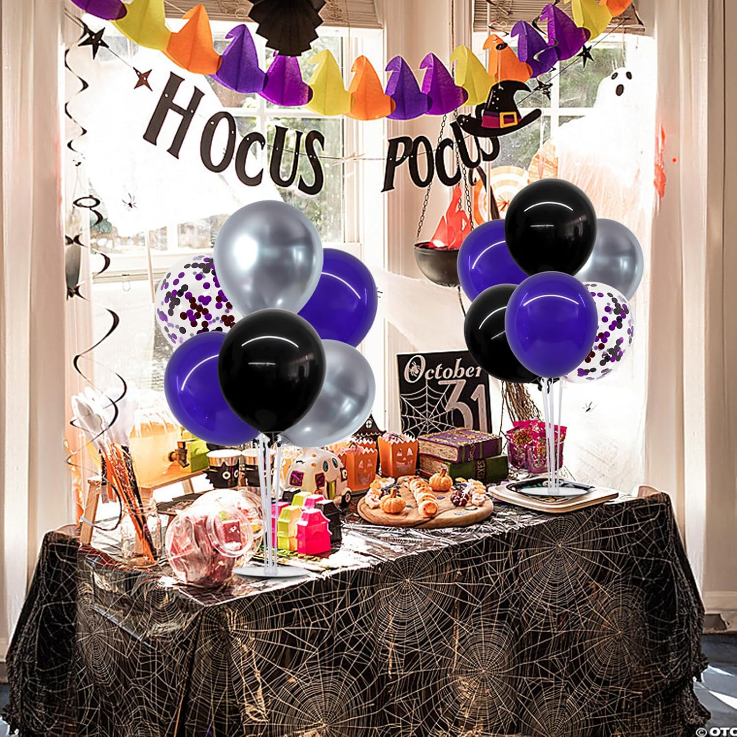 TONIFUL Halloween Balloons Black Silver Purple Confetti Balloons Stand Centerpiece Table Decorations for Birthday,Halloween Party Decoration Bar,Anniversary,Graduation Decoration 2025(4 Set)